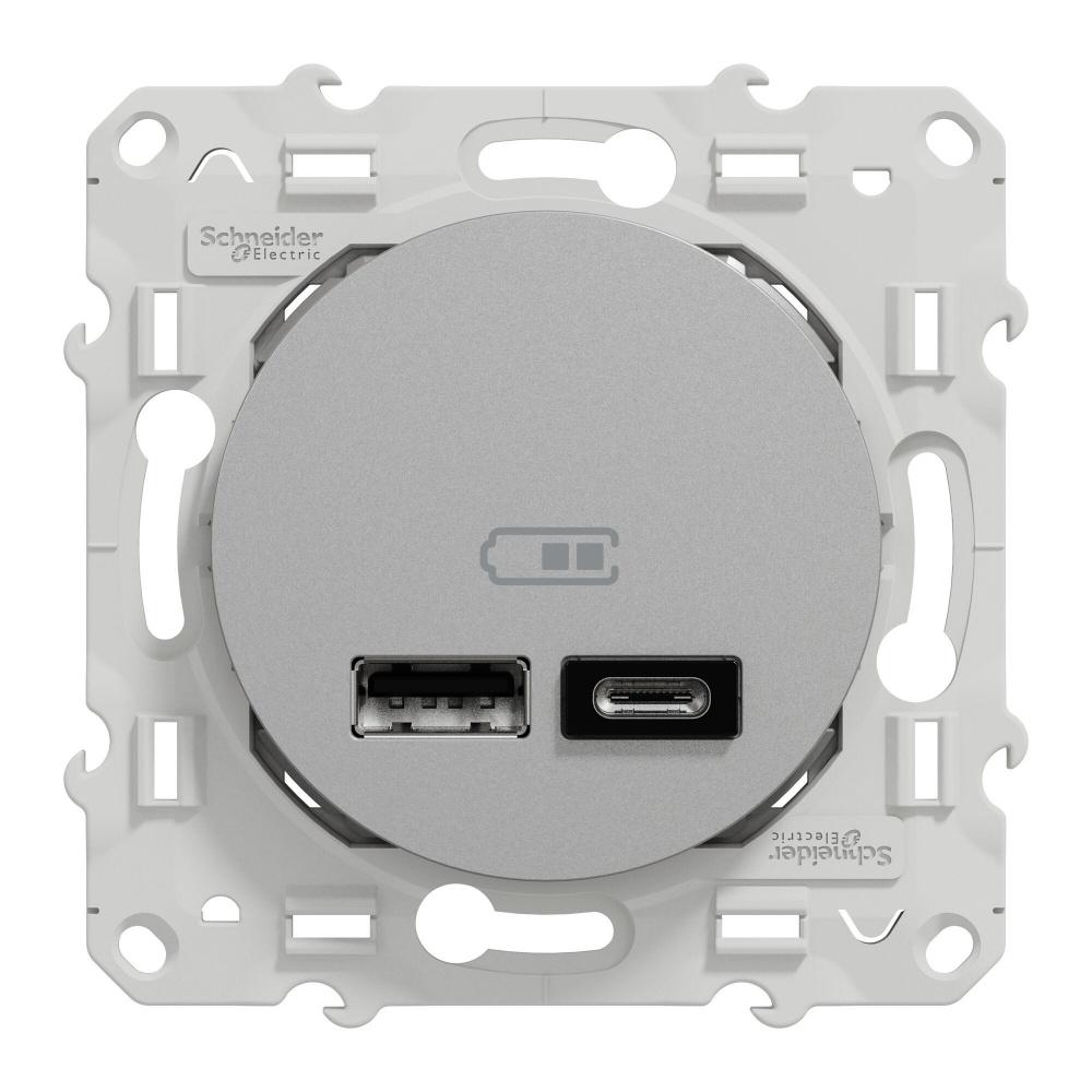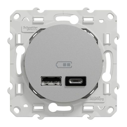 Prise chargeur double usb A+C 12W à assembler Odace, SCHNEIDER ELECTRIC, aluminium
