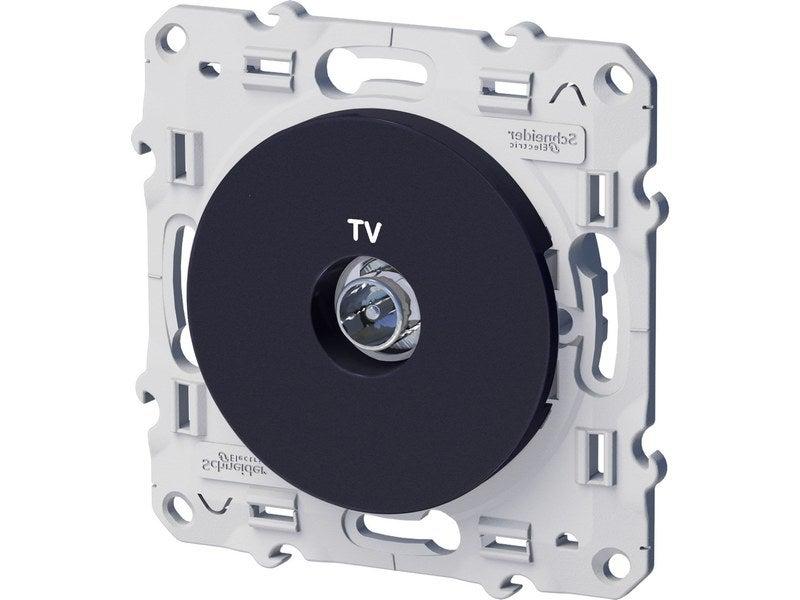 Nom du produit: Prise TV Marque du produit: SCHNEIDER ELECTRIC Nom de la série: Odace Type de produit: A assembler Couleur: Gris anthracite Matière principale: Plastique Finition du produit: Mat Nombre de modules: 1 Type de fixation: A vis (griffes vendues séparemment) Hauteur (en mm): 70 Largeur