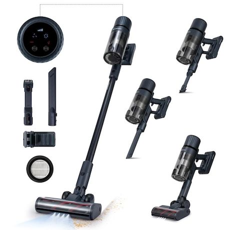 L'aspirateur balai sans fil Schneider SCH V20 combine puissance de 140 W, filtration HEPA lavable, et affichage numérique pour un nettoyage efficace au quotidien. Son moteur offre jusqu'à 12 KPa d'aspiration (25 ± 10 AW) et un bac de 650 ml, idéal pour sols durs, tapis et poils d'animaux.