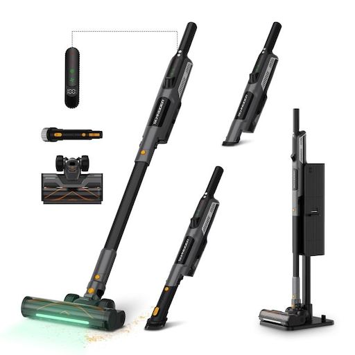 Équipé d'un écran numérique indiquant le niveau de batterie, l'état de charge et les alertes de blocage, il garantit une expérience d'utilisation intuitive. Sa batterie Li-Ion amovible 2600 mAh offre jusqu'à 50 minutes d'autonomie, idéale pour nettoyer toute la maison sans interruption. La brosse motorisée à LED, le filtre HEPA lavable et la station avec collecteur de 2 L complètent un ensemble performant, moderne et facile à entretenir.