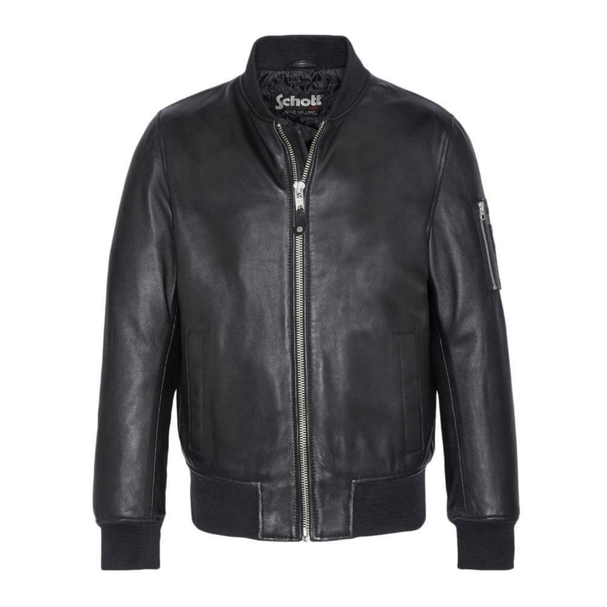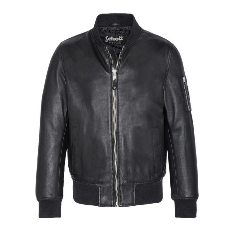 Optez pour ce blouson Schott 100% cuir d'agneauLongueur : courtCol rond montant en côtesFermeture zippée2 poches côtés pressionnéesFinitions bord côtes poignets et basePoche plaquée zippée sur la mancheCoupe slim fit