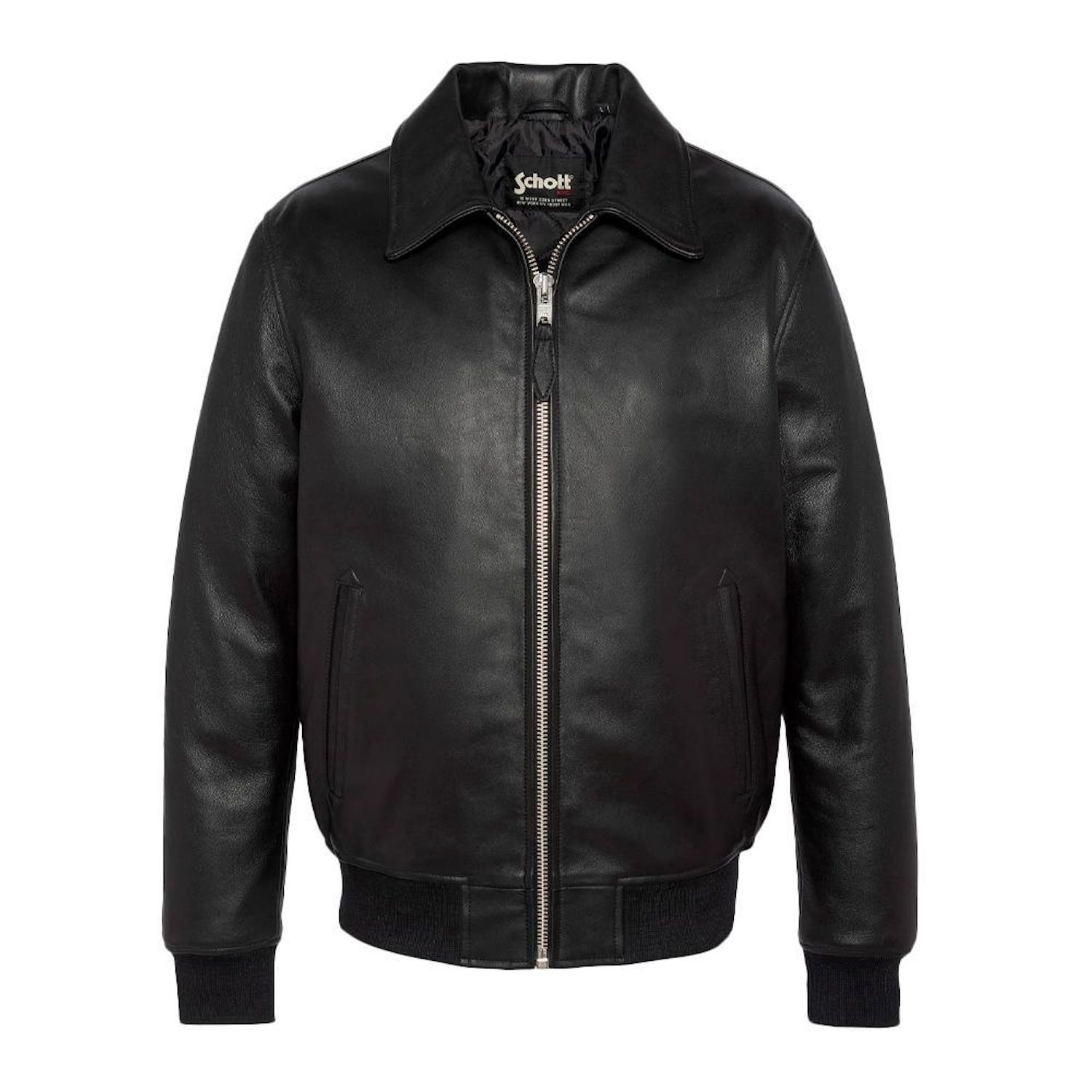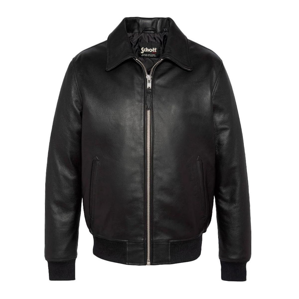Craquez pour le Blouson Cuir de la marque SCHOTT !Coloris : NoirCol chemiseFermeture zippée2 poches basses & 2 poches intérieuresFinition bord côte poignets et tailleComposition : 100% Cuir d'agneau