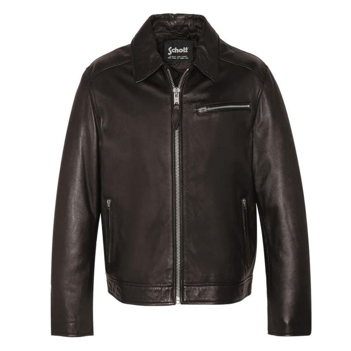 Craquez pour cette veste en cuir de la marque Schott !Composition : Extérieur en cuir, Doublure 100% polyesterCoupe altiqueCol chemise2 poches basses à fermetures zippées1 poche poitrine2 poches intérieuresColoris : Marron