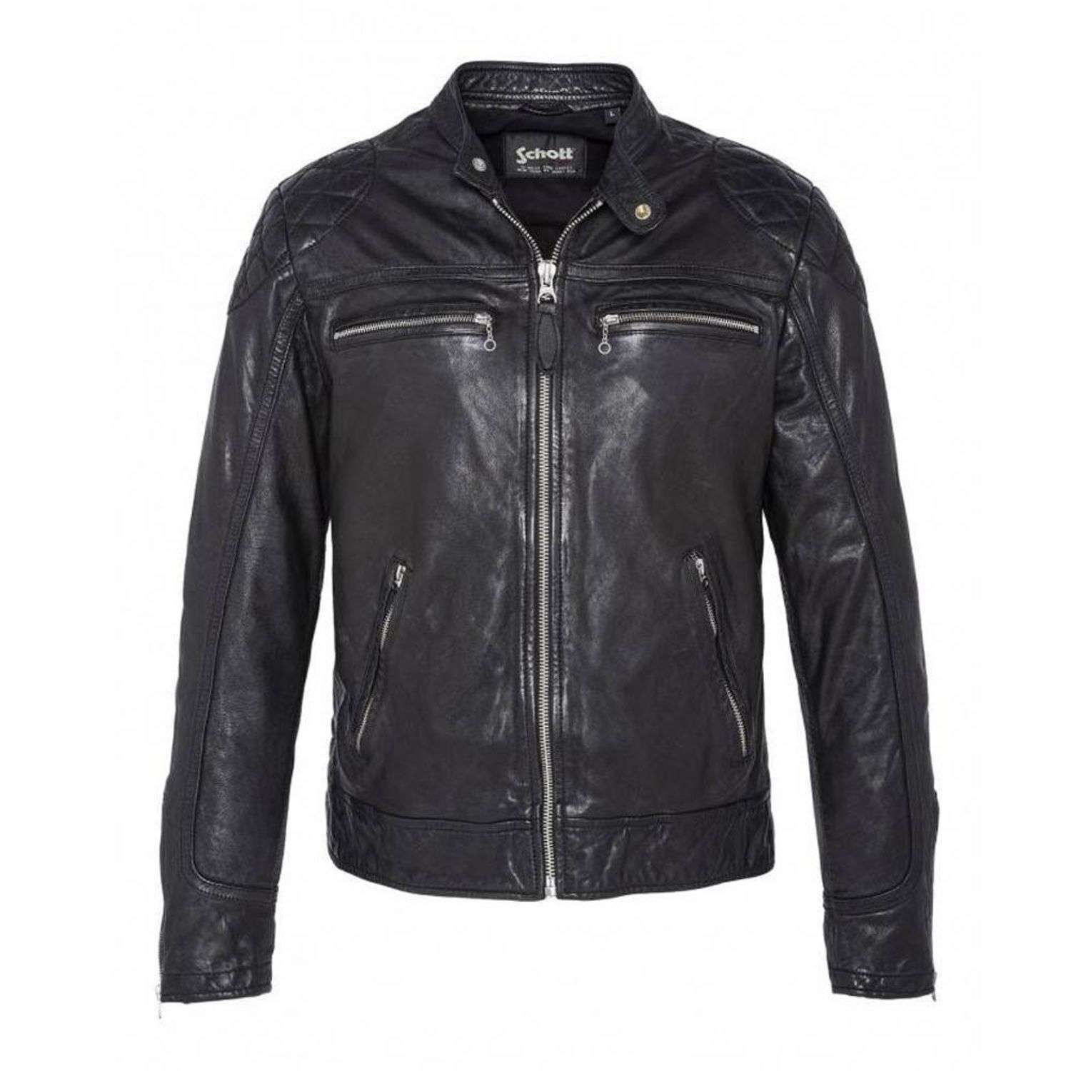 Optez pour ce blouson Schott Coloris : NoirManches longuesCol montantComposition : 100% cuir d'agneau