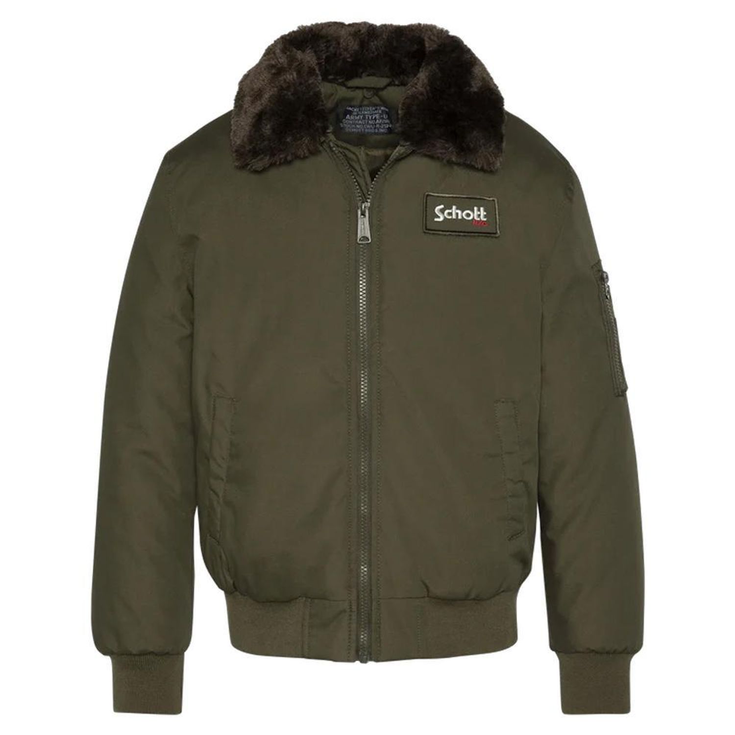 Optez pour ce blouson Schott à prix bas !Composition : 65%polyester 35% CottonColoris : KakiManches longuesCol montant