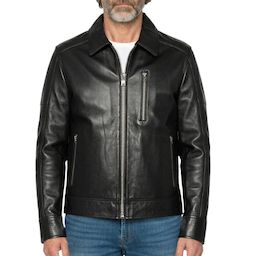 Blouson homme de la marque Schott !Coloris : NoirManches longuesFermeture à zip1 poche poitrine zippée et 2 poches basses zippées2 poches intérieuresCoupe standardComposition : 100% cuir d'agneau