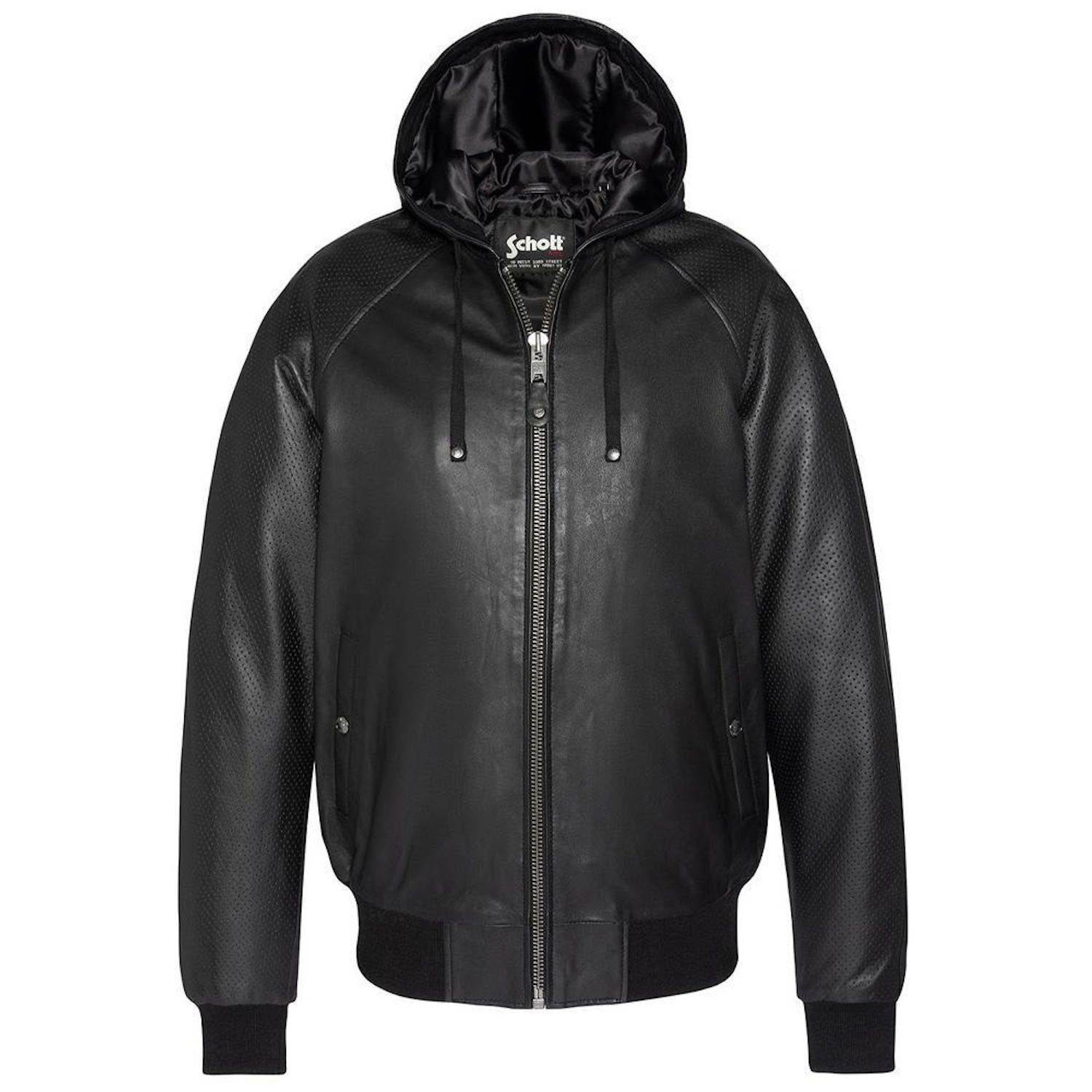 Craquez pour le blouson de la marque SCHOTT ! Coloris : Noir Capuche Zip de la marque Poches latérales Composition : 100% Cuir