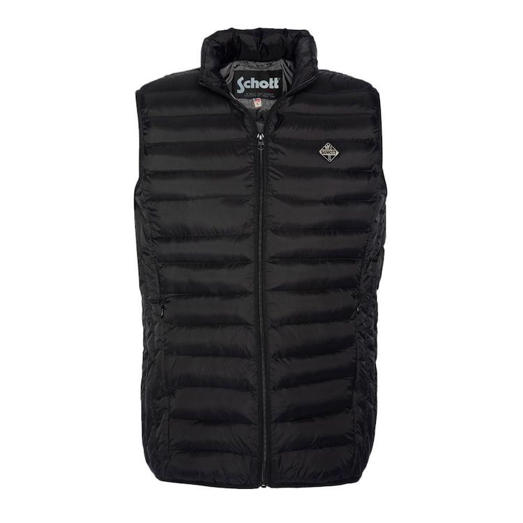 Optez pour cette doudoune homme de la marque Schott ! Couleur : Noir Coupe altique Sans manches Fermeture zippée Patch Schott brodé Poches latérales zippées Composition : 100% polyester