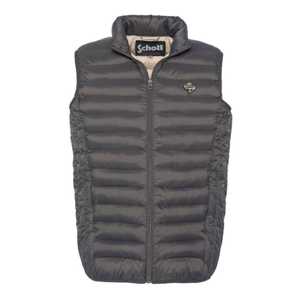 Optez pour cette doudoune homme de la marque Schott ! Couleur : Grise Coupe altique Sans manches Fermeture zippée Patch Schott brodé Poches latérales zippées Composition : 100% polyester