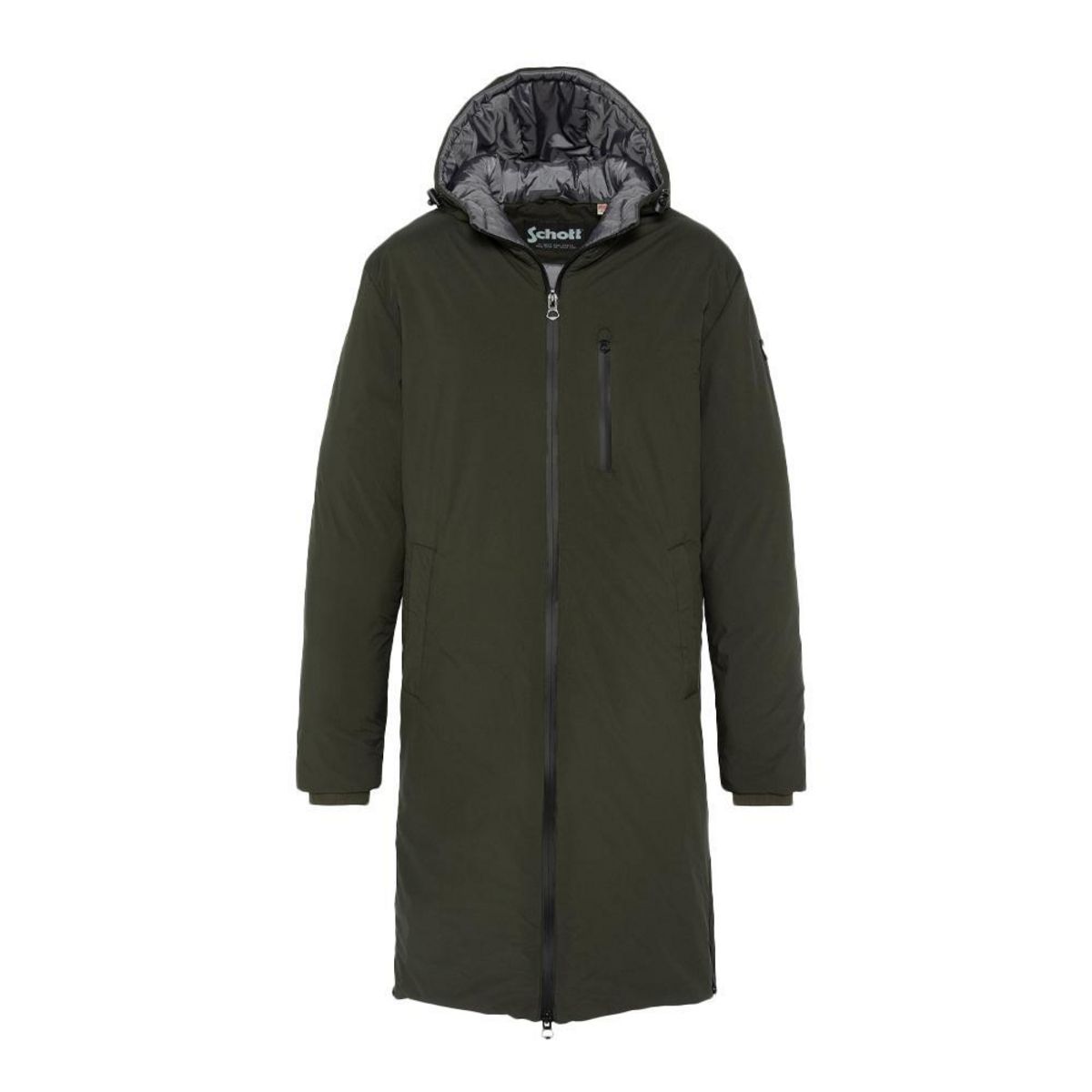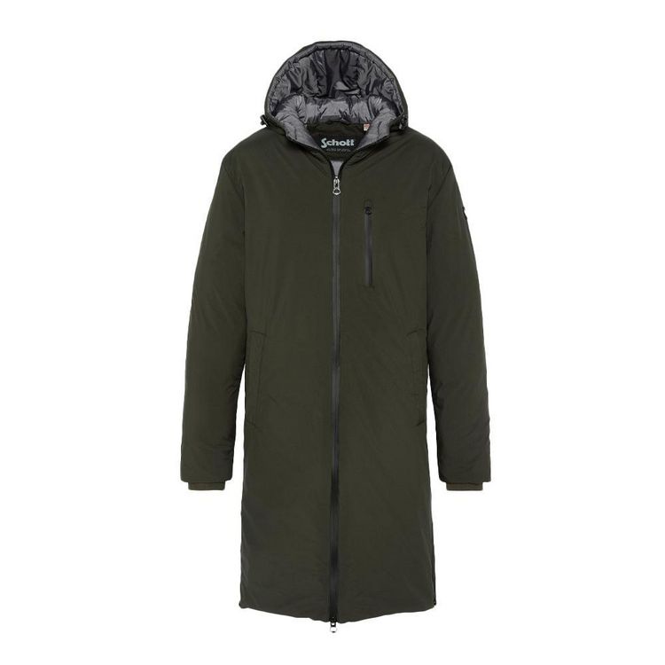 Parka à capuche Homme Schott !Coloris : Kaki CapucheManches longuesZip de fermetureCoupe longueComposition : 95%polyester 5%elasthane