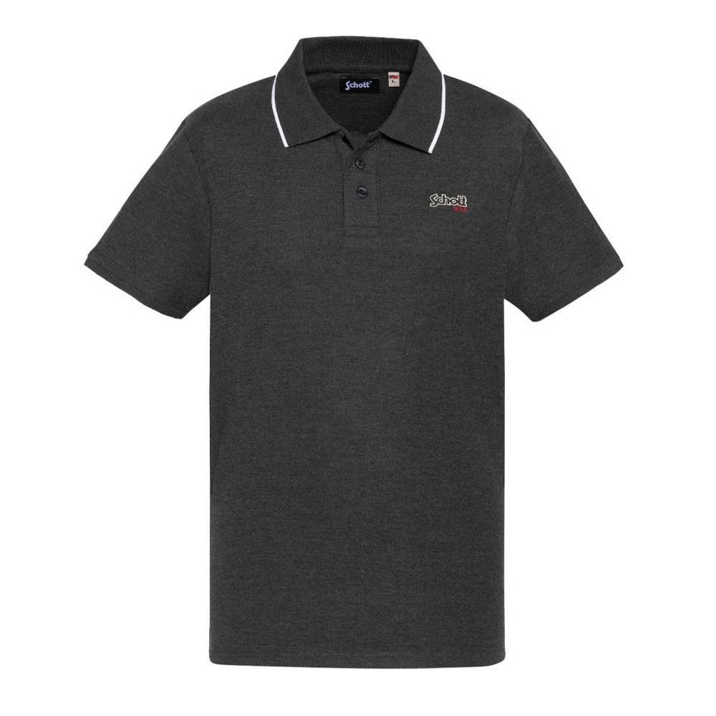 Craquez pour le polo de la marque SCHOTT !Coloris : Gris Anthracite Coupe: droiteCol: polo 3 boutonsManches: courtesLogo: brodéFermeture: boutonsComposition : 100% Coton