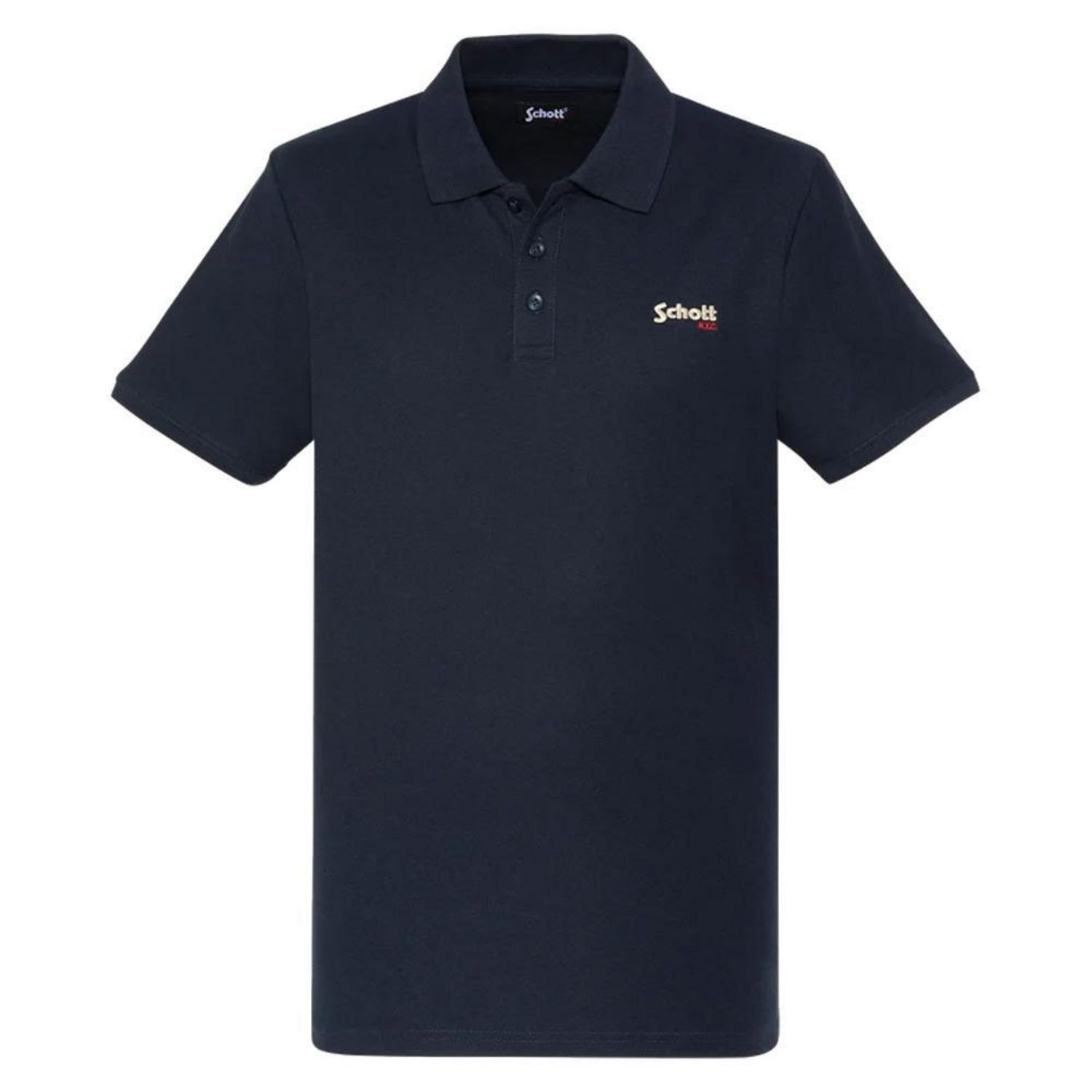 Craquez pour ce polo homme de la marque Schott !Coloris : MarineCoupe altiqueCol à trois boutonsManches courtesBroderie sur la poitrineComposition : 100% coton