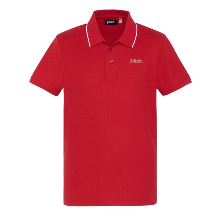 Craquez pour le polo de la marque SCHOTT !Coloris : Rouge Coupe: droiteCol: polo 3 boutonsManches: courtesLogo: brodéFermeture: boutonsComposition : 100% Coton