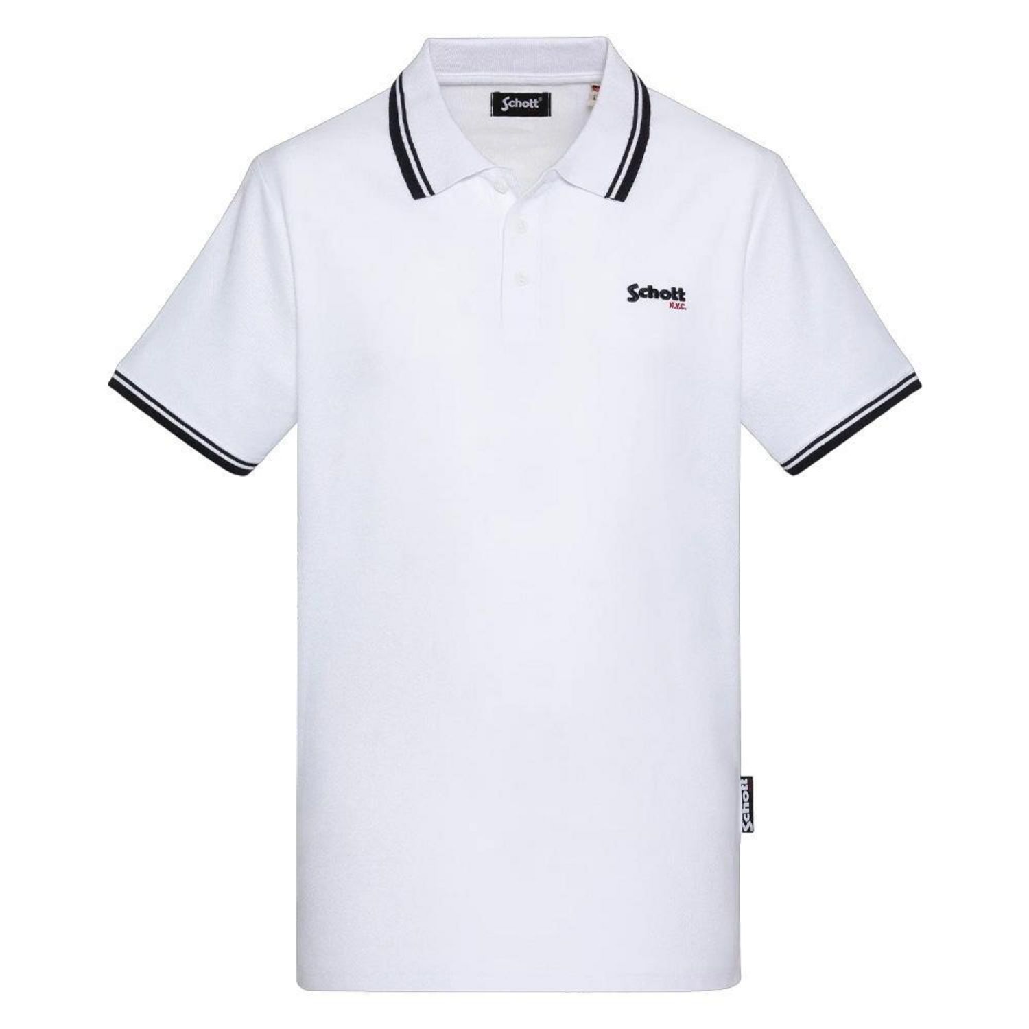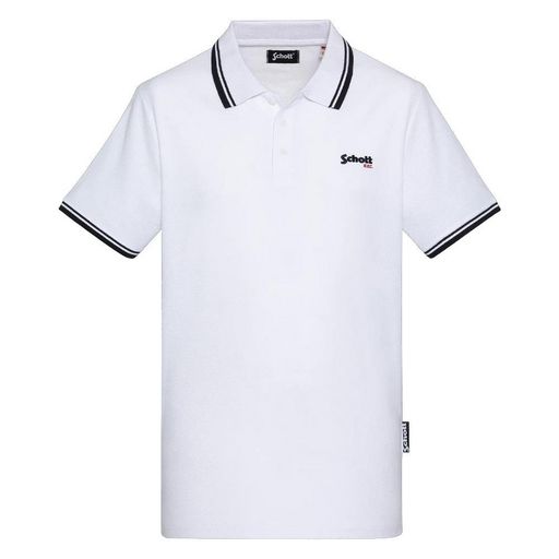 Découvrez ce polo de la marque Schott !Coloris : BlancCoupe altiqueCol à trois boutonsBroderie SchottManches courtesComposition : 100% coton