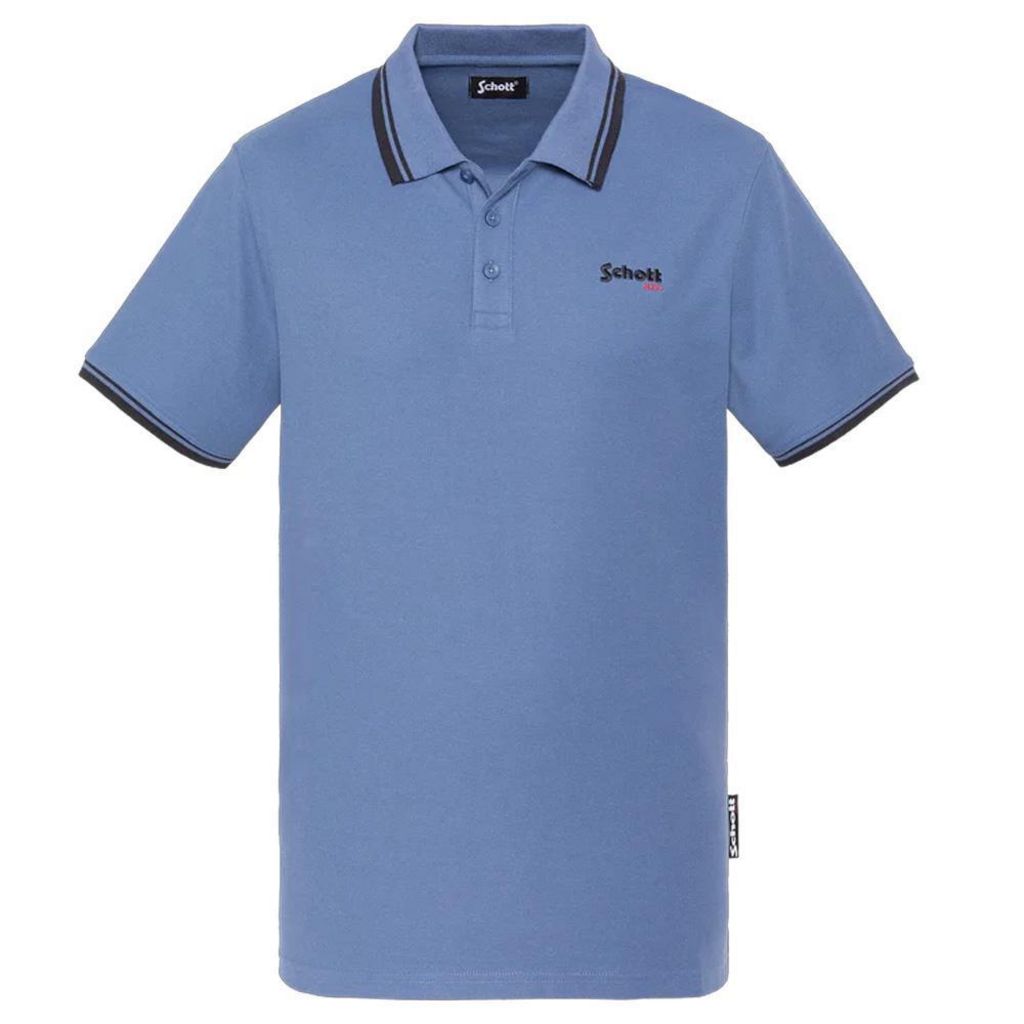 N'attendez plus pour commander ce polo Schott !Coloris : BleuCoupe altiqueManches courtesCol à trois boutonsBroderie sur la poitrineComposition : 100% coton