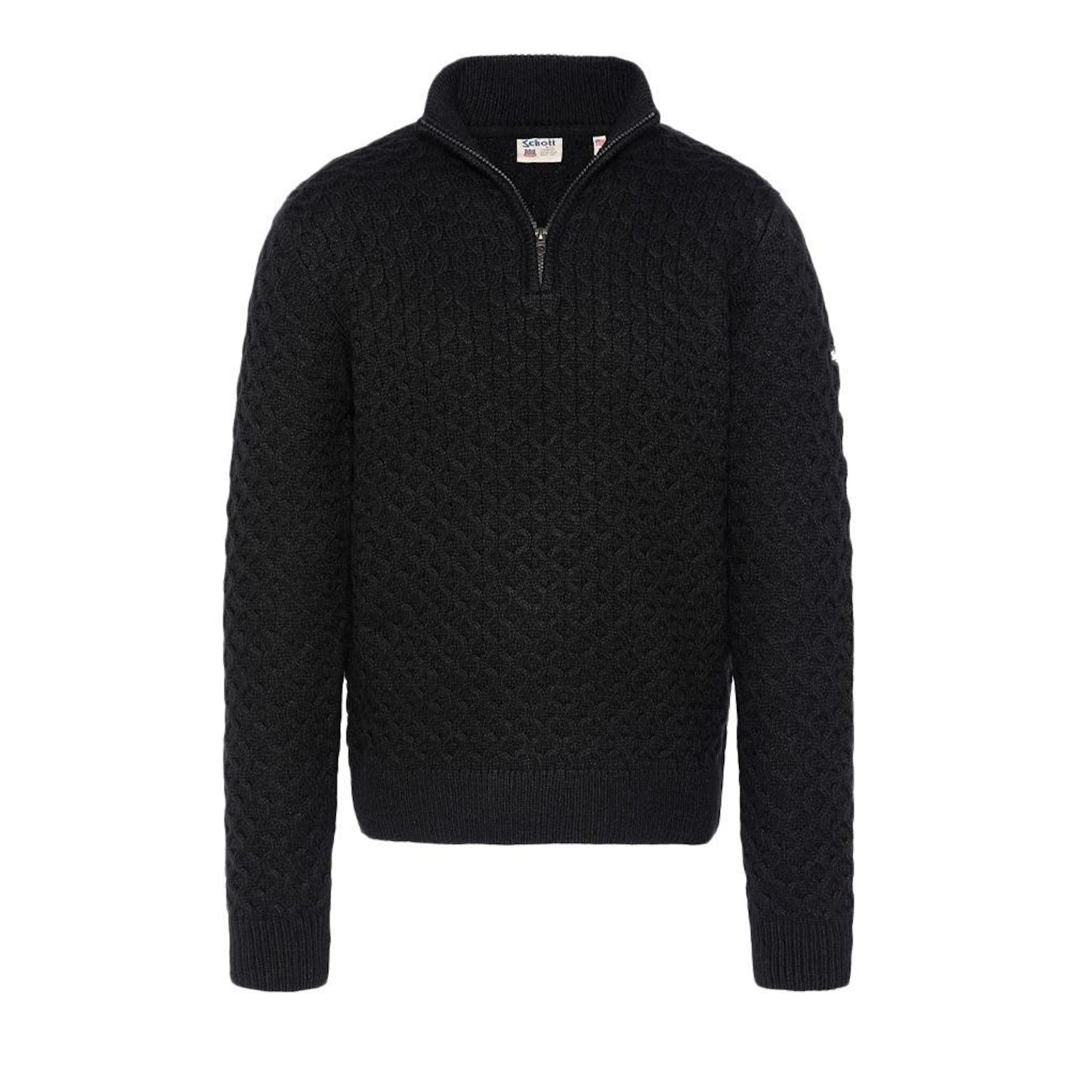 Optez pour le pull de la marque SCHOTT !- Coloris : Noir- 1/4 Zip de fermeture- Manches longues- Composition : 55%acrylic/35%nyl/10%wool