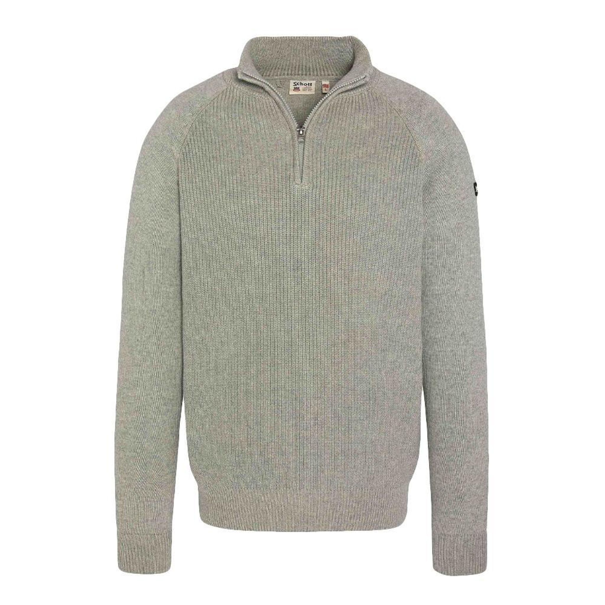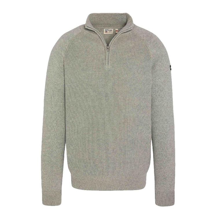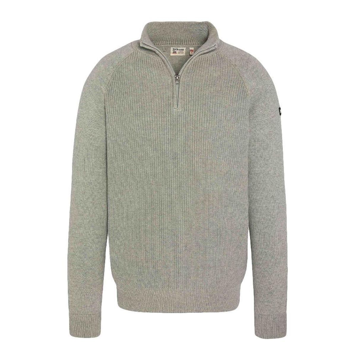 Optez pour le pull homme de la marque Schott !- Coloris : Gris- Manches longues- Col montant- 1/4 zip- Pull en maille côteler- 100% Coton