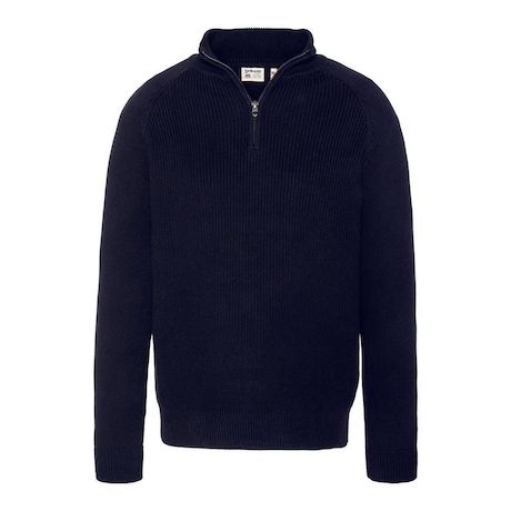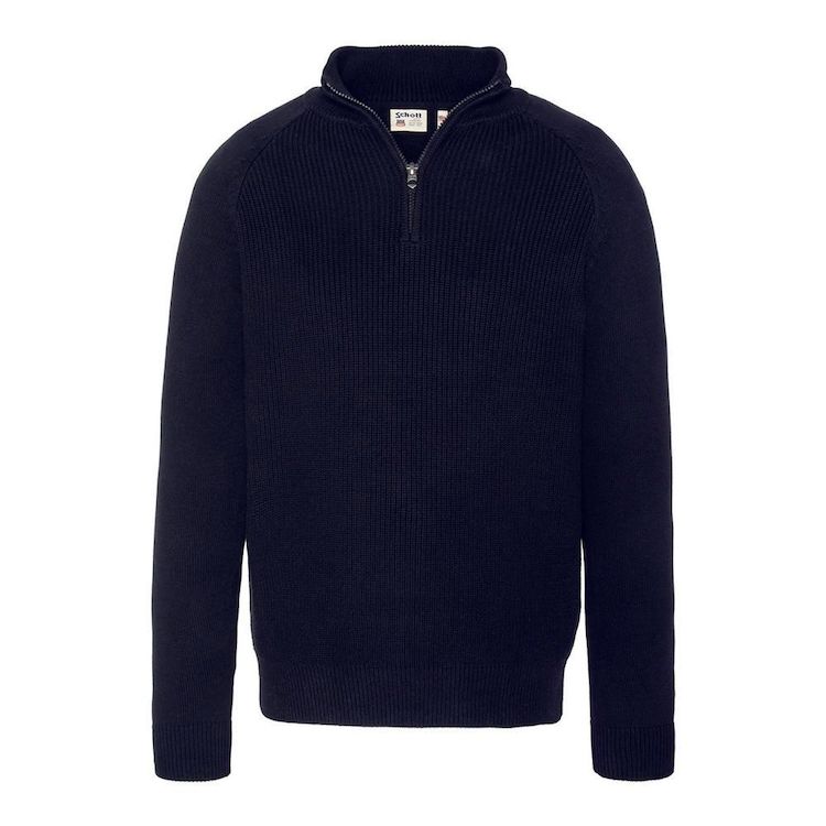 Optez pour le pull homme de la marque Schott ! Coloris : Marine Manches longues Col montant 1/4 zip Pull en maille côteler 100% Coton