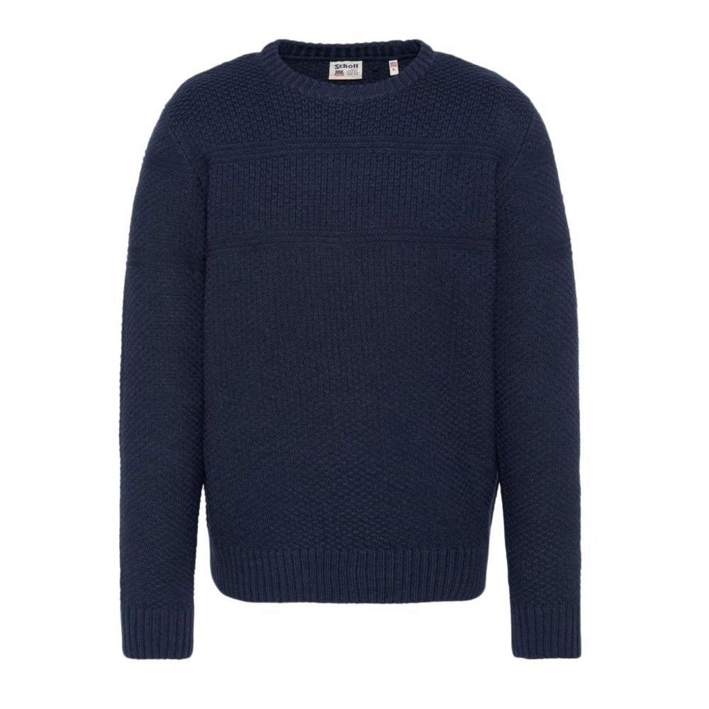 Craquez pour le pull de la marque SCHOTT à prix bas !Coloris : marine Col rond Manches longues Pull en maille Composition : 85%acrylique/ 15% Laine