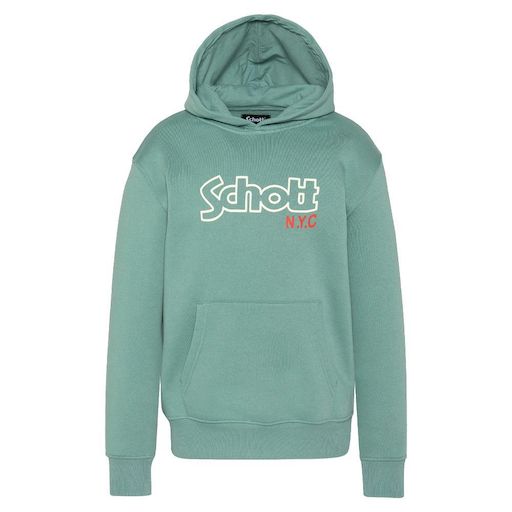 Découvrez ce sweat de la marque Schott !- Couleur : Vert- Coupe altique- Avec capuche- Poche kangourou- Imprimé sur la poitrine- Manches longues- Composition : 80% coton, 20% polyester