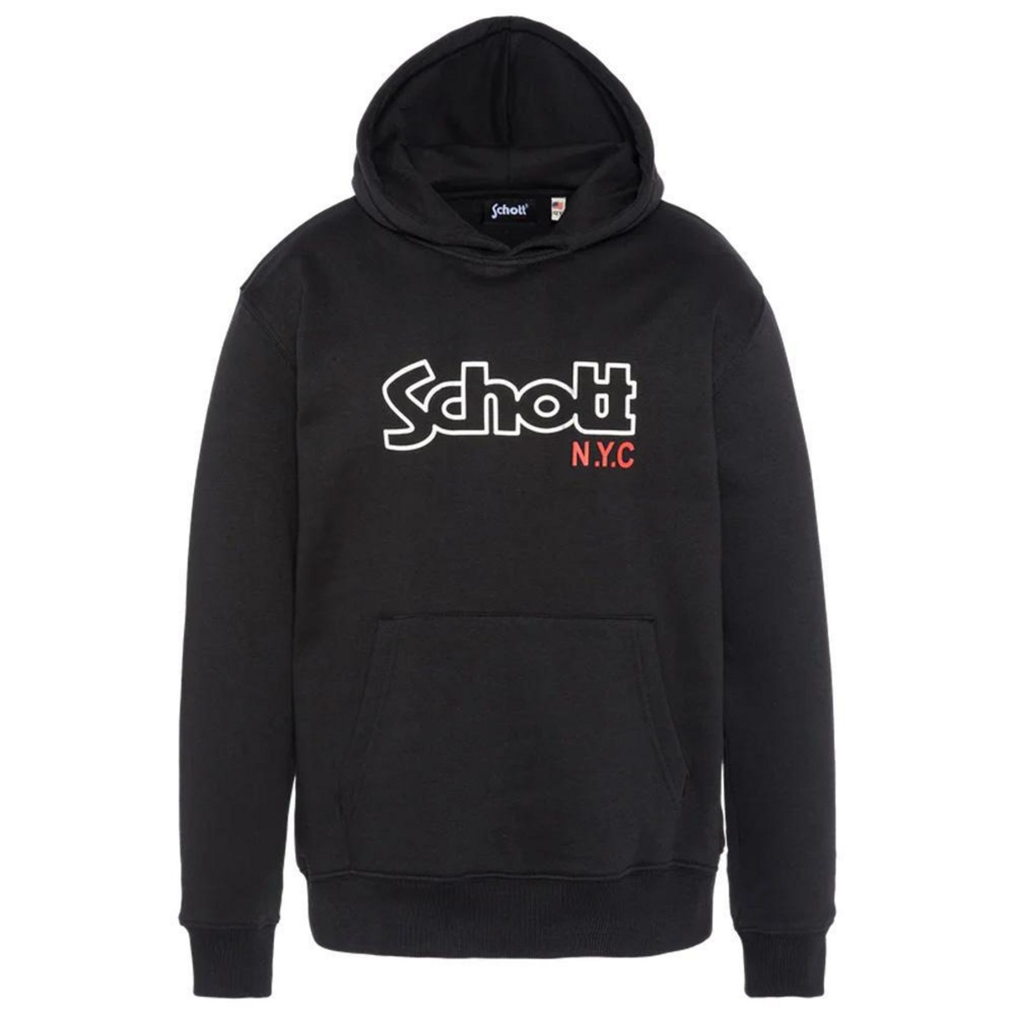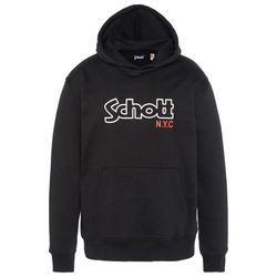Découvrez ce sweat de la marque Schott !Couleur : Noir Coupe altiqueAvec capuchePoche kangourouImprimé sur la poitrineManches longuesComposition : 80% coton, 20% polyester
