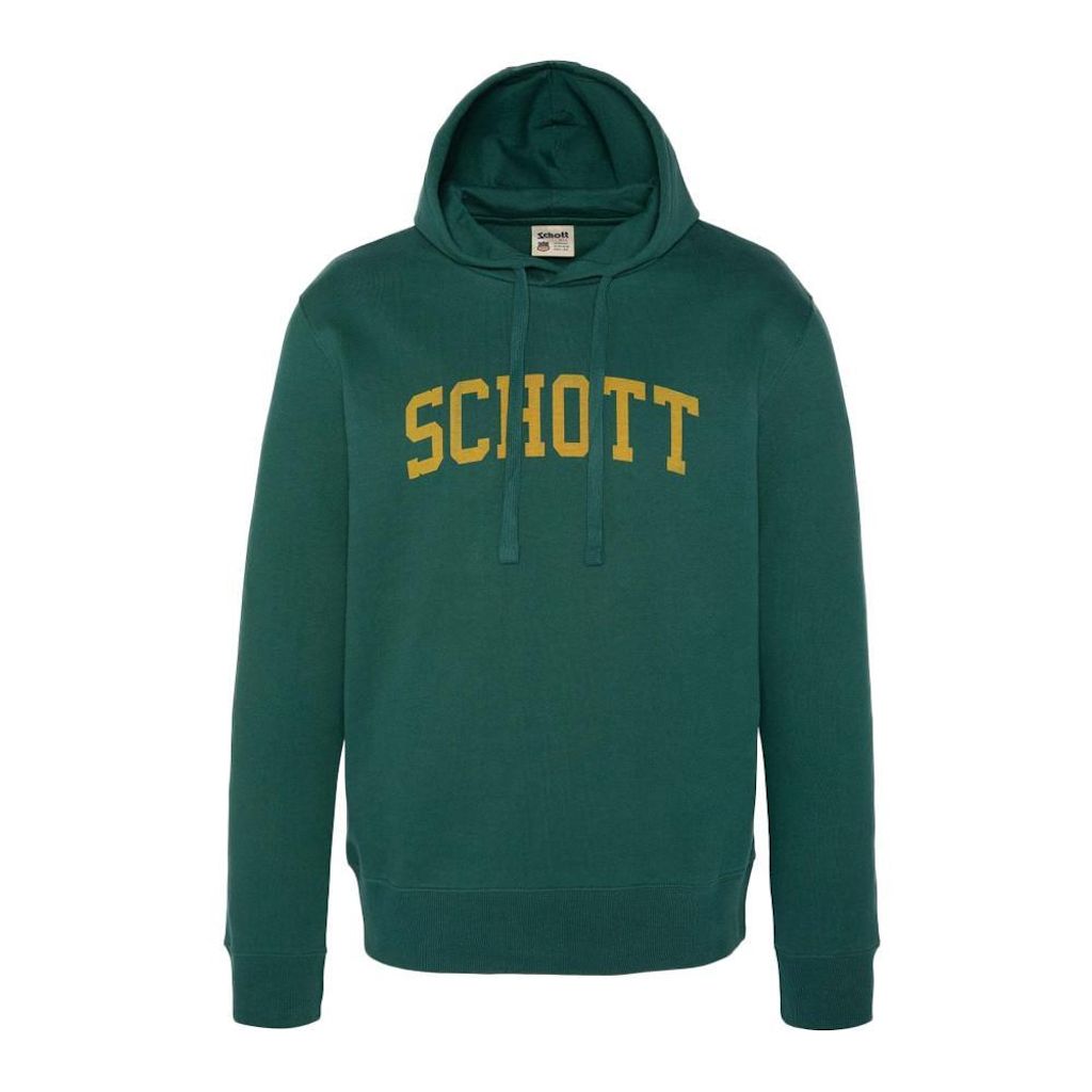 Optez pour le sweat homme de la marque Schott ! Coloris : Vert Manches longues Sweat à capuche avec cordon de serrage Imprimé sur la poitrine 80% Coton, 20% Polyester