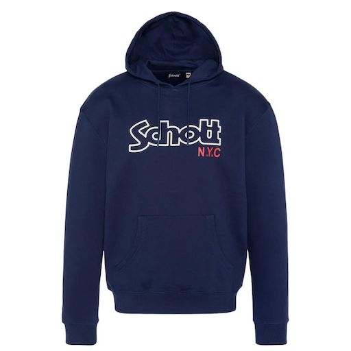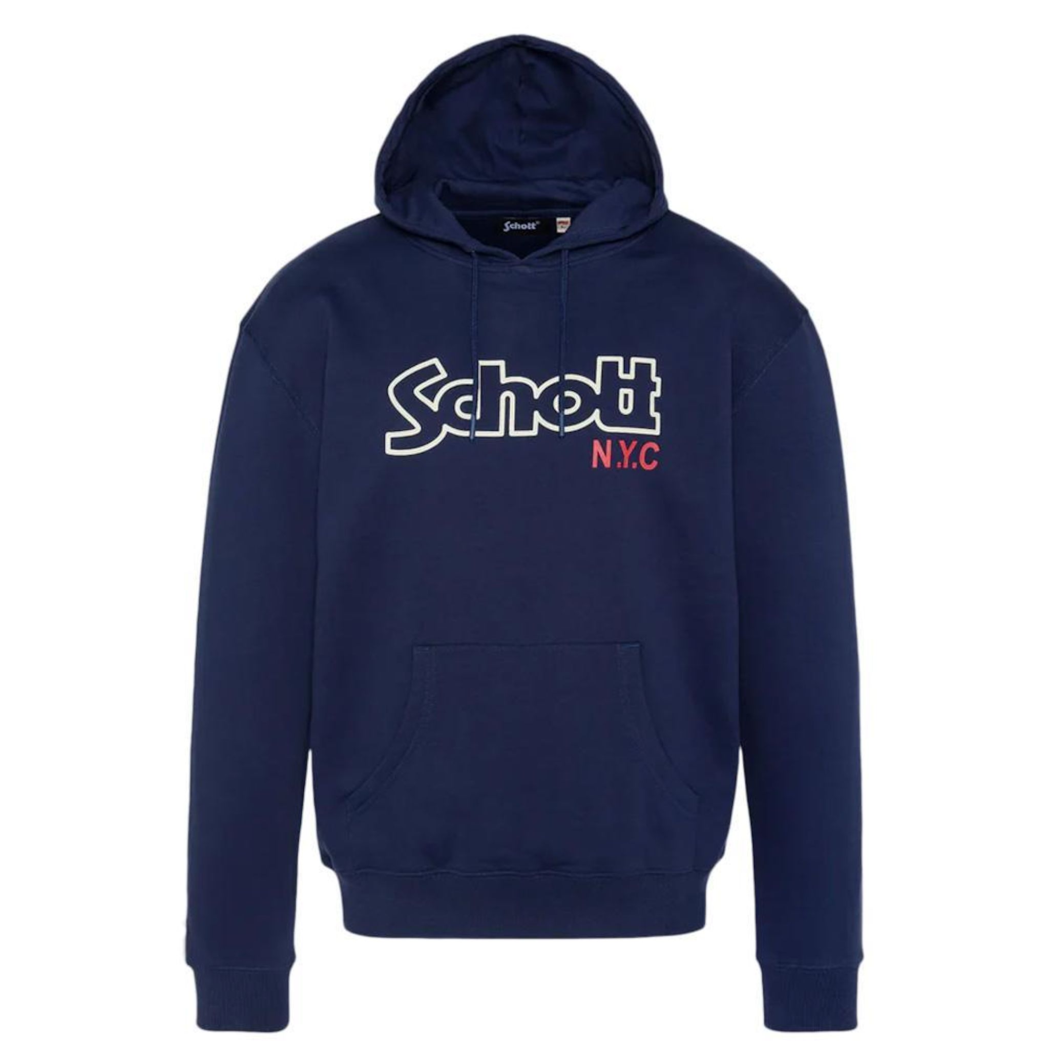 Découvrez ce sweat de la marque Schott !- Couleur : Marine- Coupe altique- Avec capuche- Poche kangourou- Imprimé sur la poitrine- Manches longues- Composition : 80% coton, 20% polyester