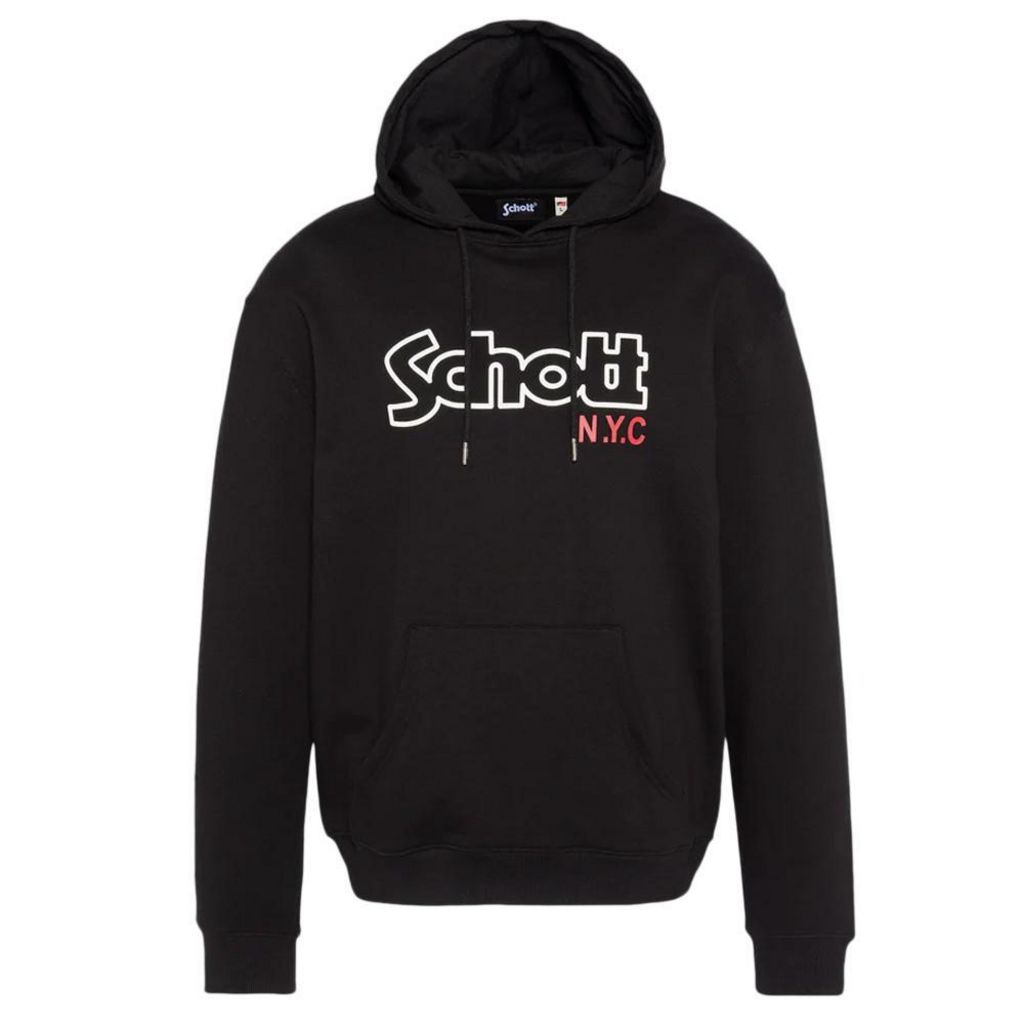 Découvrez ce sweat de la marque Schott !Couleur : NoirCoupe altiqueAvec capuchePoche kangourouImprimé sur la poitrineManches longuesComposition : 80% coton, 20% polyester