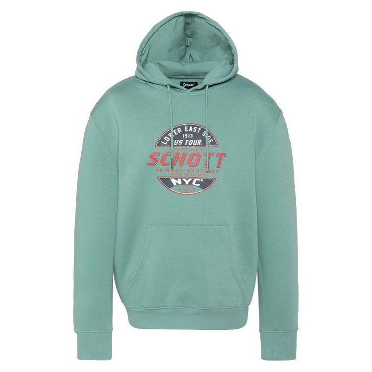 N'attendez plus pour commander ce sweat de la marque Schott !Coloris : VertCoupe altiqueManches longuesCapuche avec cordons de serragePoche kangourouImprimé sur la poitrine80% coton, 20% polyester