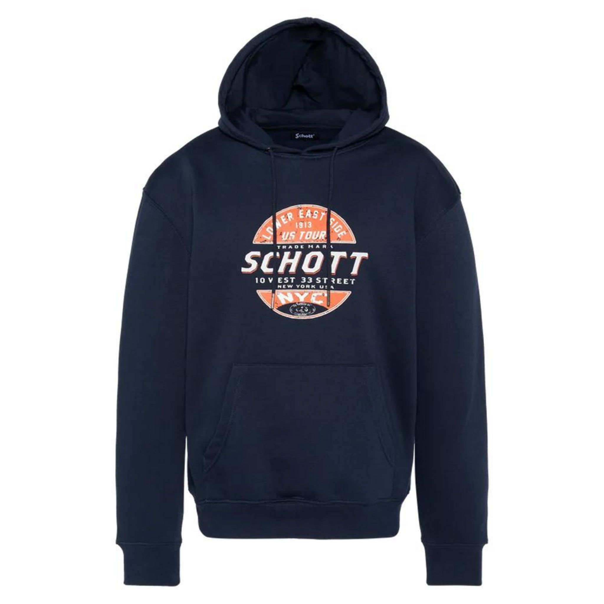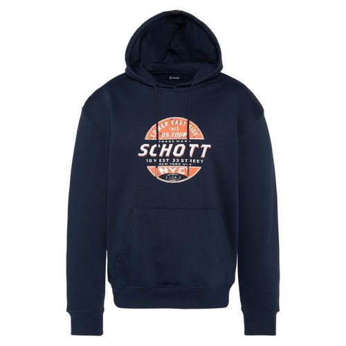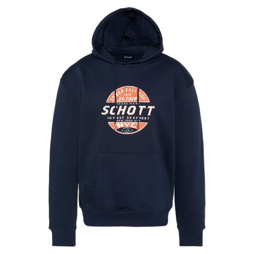 N'attendez plus pour commander ce sweat de la marque Schott !Coloris : MarineCoupe altiqueManches longuesCapuche avec cordons de serragePoche kangourouImprimé sur la poitrine80% coton, 20% polyester