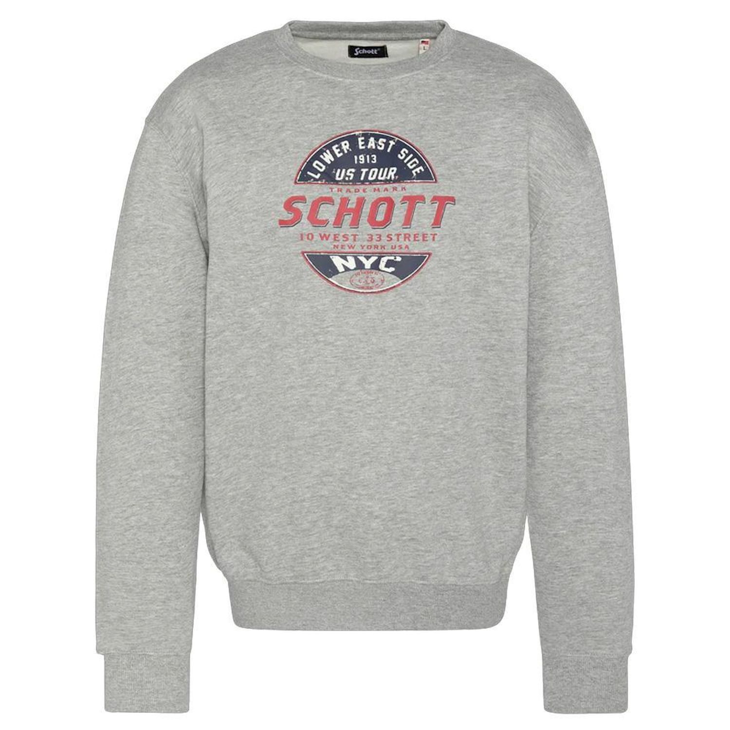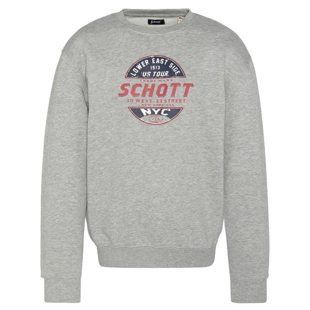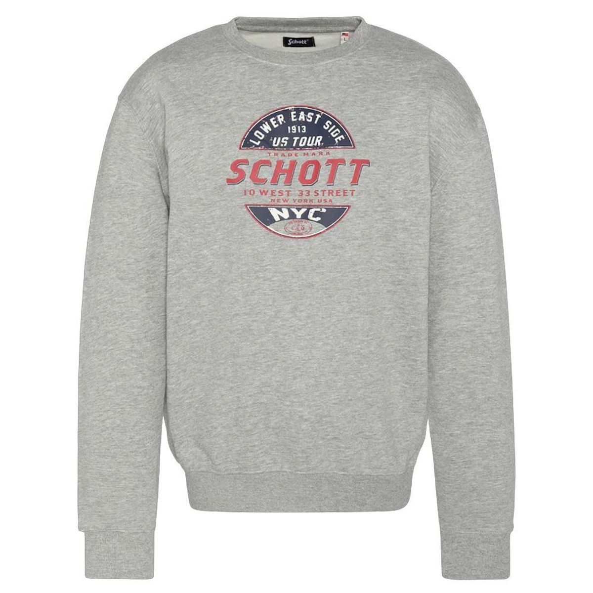 Craquez pour ce sweat de la marque Schott !Couleur : Gris Coupe altiqueCol rondManches longuesImprimé sur la poitrineComposition : 80% coton, 20% polyester