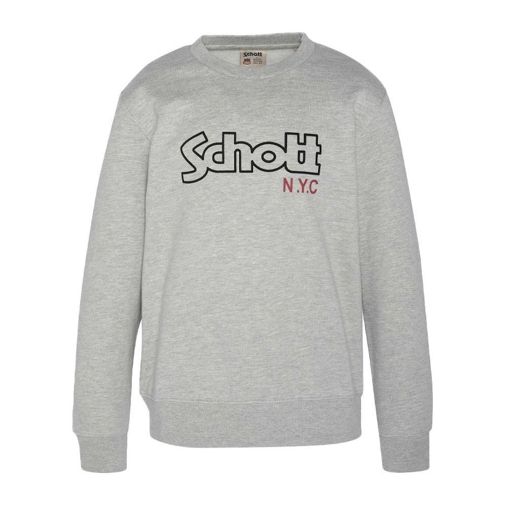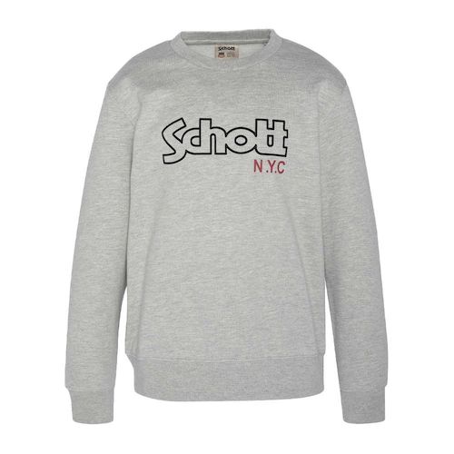 Sweat Junior de la marque Schott ! Coloris : Gris Col rond Manches longues Intérieur molletonné Coupe standard Imprimé sur l'avant 80% Coton, 20% Polyester