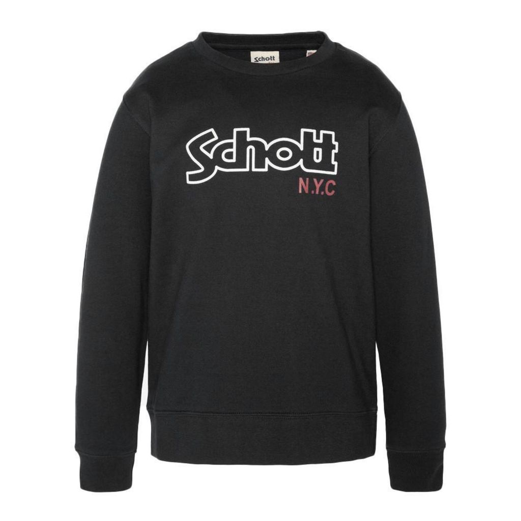 Sweat Junior de la marque Schott ! Coloris : Noir Col rond Manches longues Intérieur molletonné Coupe standard Imprimé sur l'avant 80% Coton, 20% Polyester
