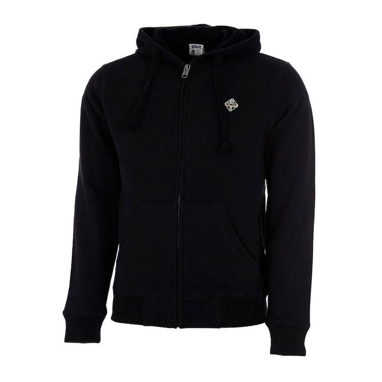 Sweat zippé Noir Homme Schott Badge Sweat zippé Capuche avec lien de serrage zip intégral patch Schott cousu sur la poitrine poches latérales 100% coton