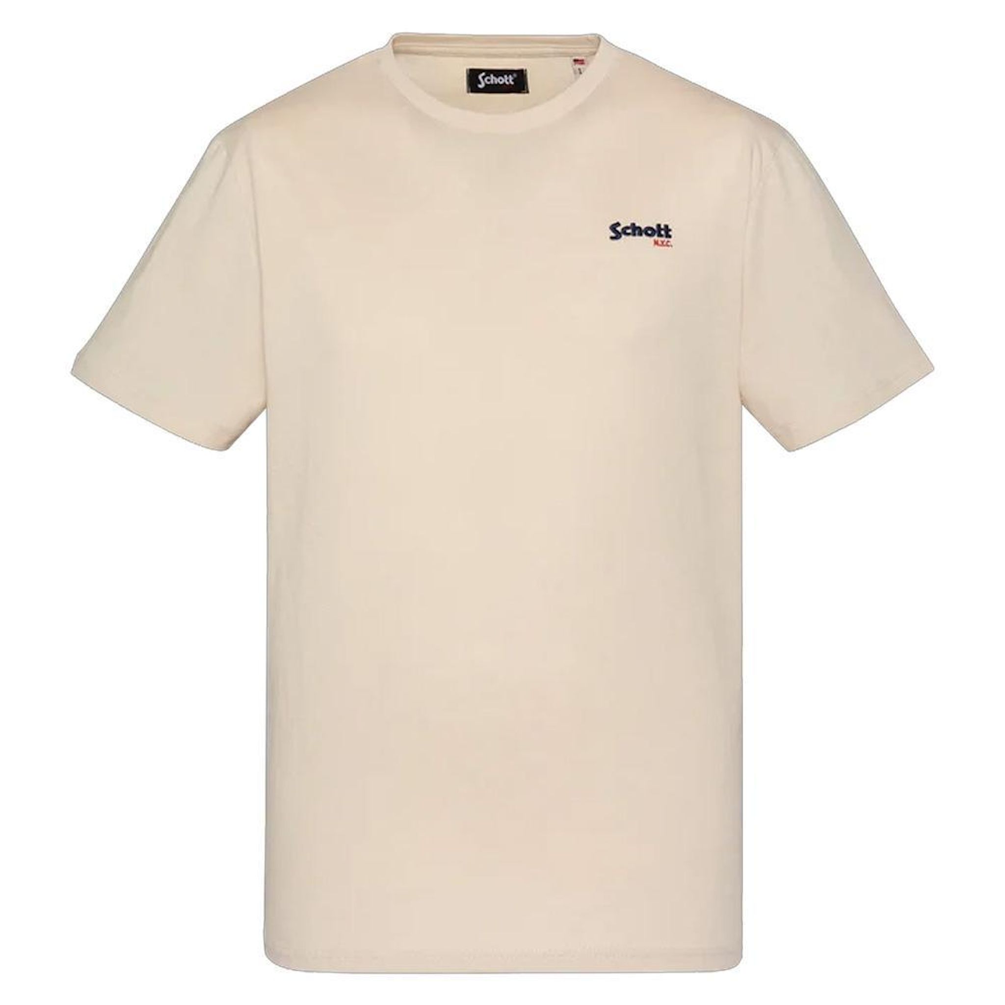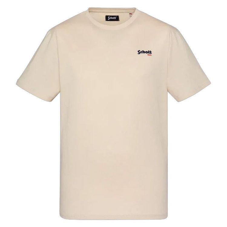 Découvrez ce t-shirt de la marque Schott !- Couleur : Beige- Coupe altique- Col rond- Manches courtes- Broderie sur la poitrine- Composition : 100% coton
