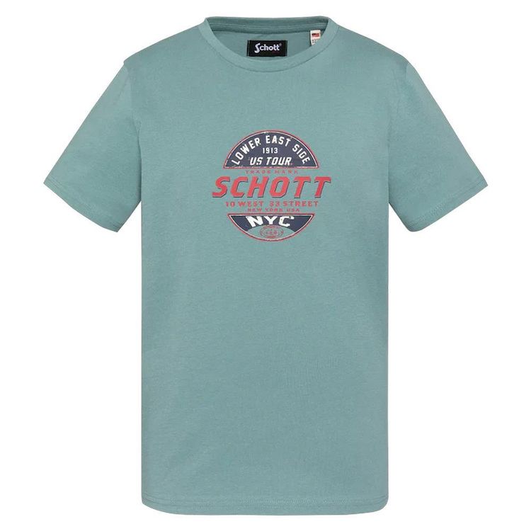 Craquez pour le t-shirt de la marque SCHOTT !- Coloris , Vert- Col rond- Manches courtes- Logo sur la poitrine- Composition : 100% Coton
