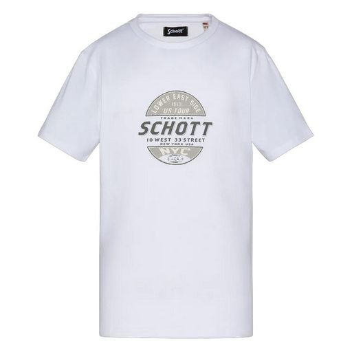 Craquez pour le t-shirt de la marque SCHOTT !Coloris , Blanc Col rondManches courtesLogo sur la poitrineComposition : 100% Coton