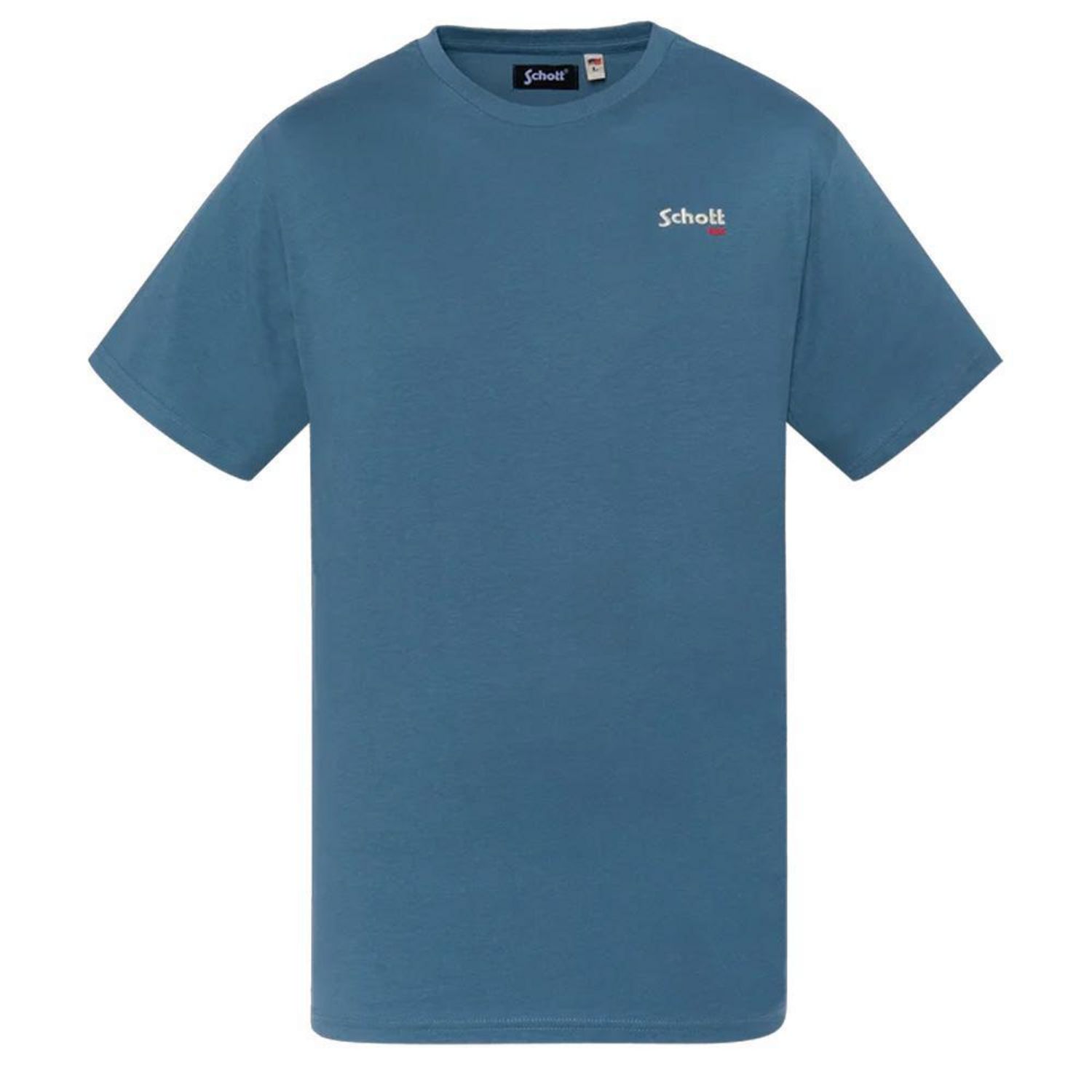 Craquez pour le t-shirt de la marque SCHOTT !Coloris , Bleu Col rond Manches courtes Logo sur la poitrine Composition : 100% Coton