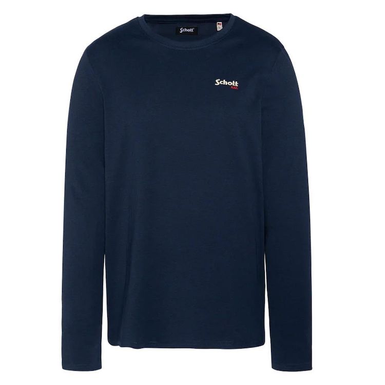 Découvrez ce t-shirt de la marque Schott !Couleur : MarineCoupe altiqueCol rondManches longuesBroderie sur la poitrineComposition : 100% coton