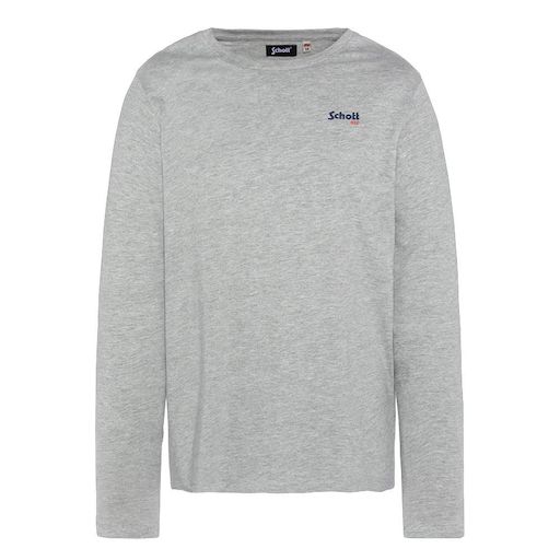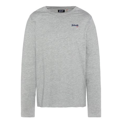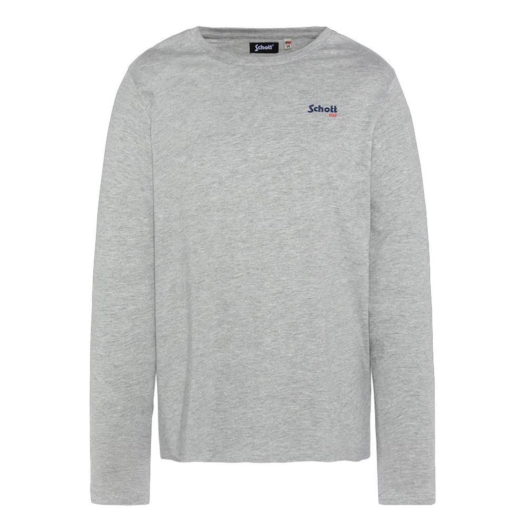Découvrez ce t-shirt de la marque Schott !Couleur : Gris Coupe altiqueCol rondManches longuesBroderie sur la poitrineComposition : 100% coton
