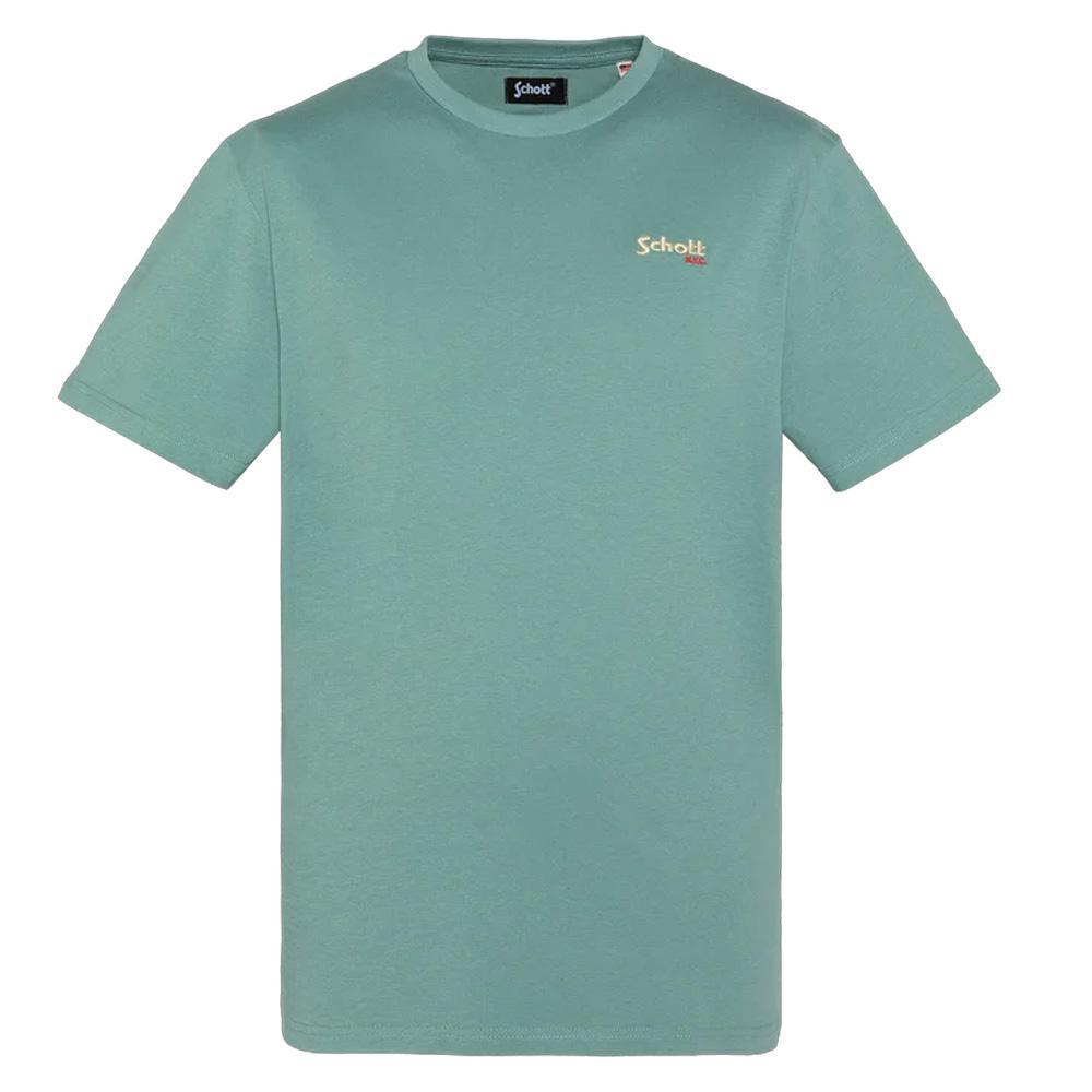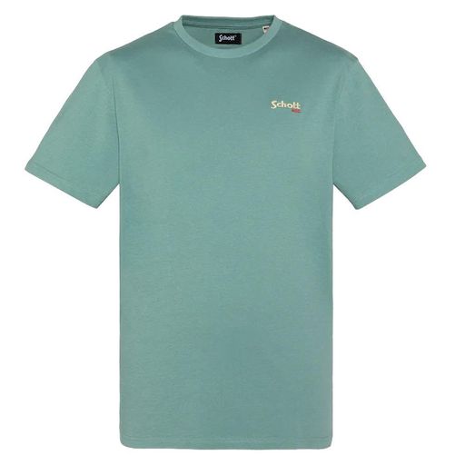 Découvrez ce t-shirt de la marque Schott !Couleur : Vert Coupe altiqueCol rondManches courtesBroderie sur la poitrineComposition : 100% coton