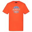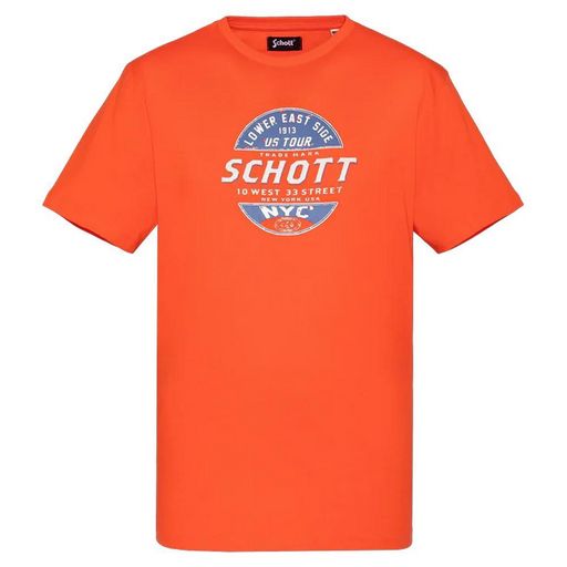 Découvrez ce t-shirt de la marque Schott !Couleur : OrangeCoupe altiqueCol rondManches courtesImprimé sur la poitrineComposition : 100% coton