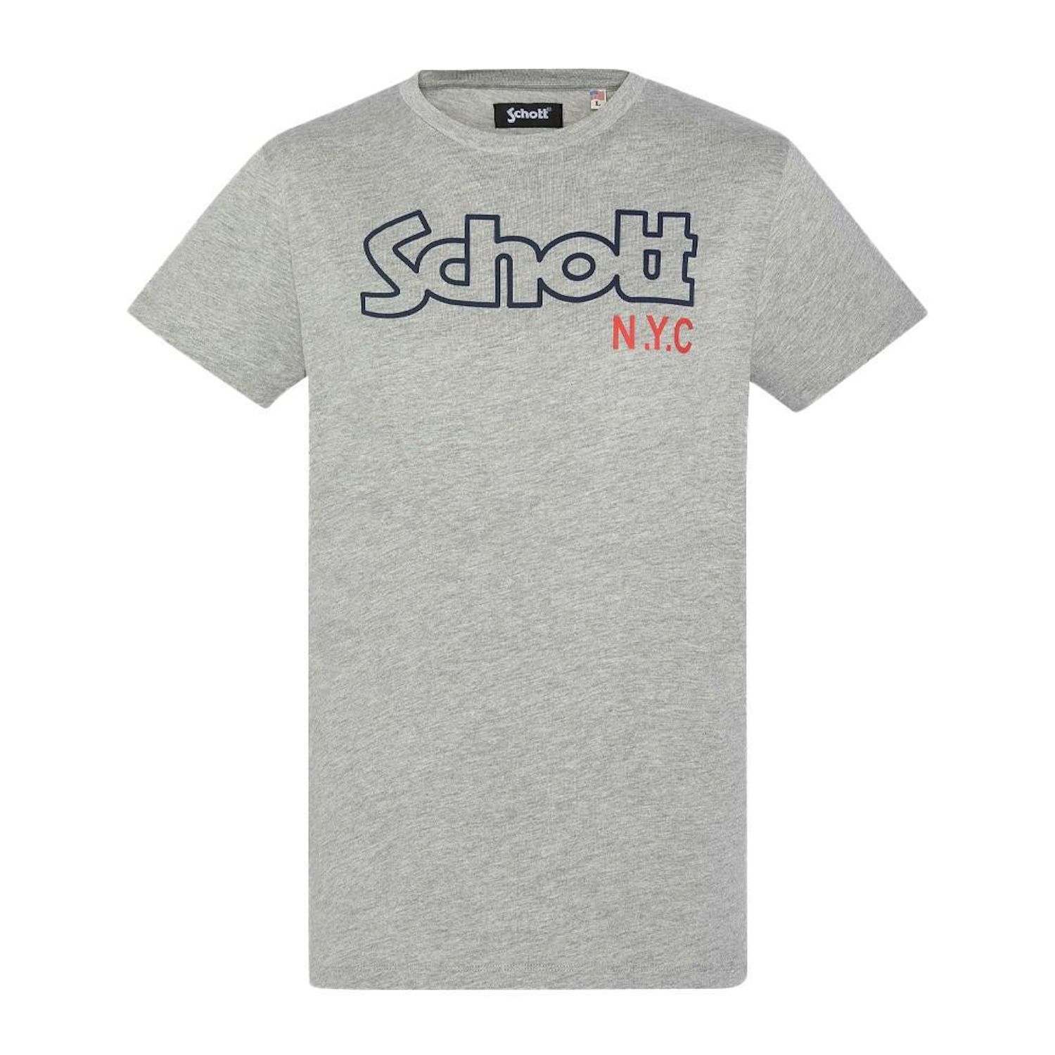 Optez pour le T-shirt Homme proposé par la marque Schott ! Coloris : Gris Col rond Manches courtes Imprimé Schott sur l'avant 100% Coton