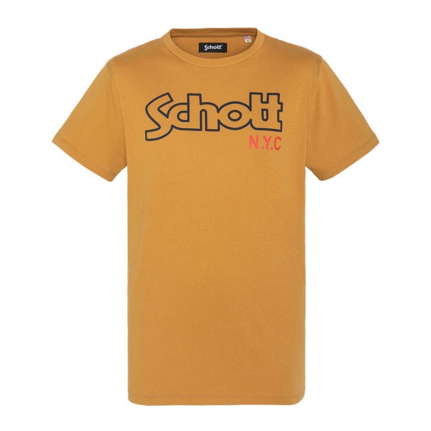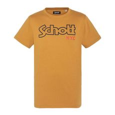 Optez pour le T-shirt Homme proposé par la marque Schott ! Coloris : Ocre Col rond Manches courtes Imprimé Schott sur l'avant 100% Coton