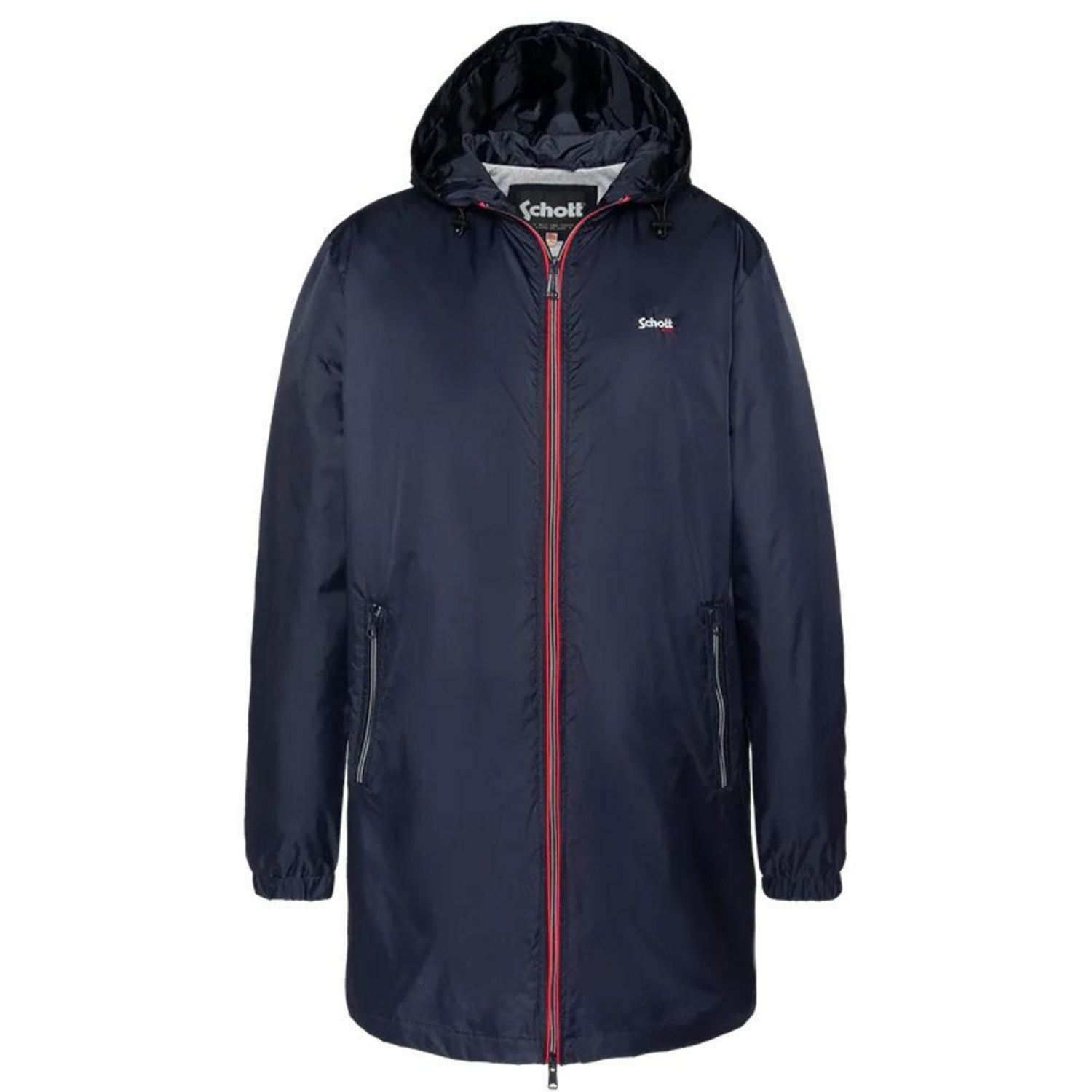 Optez pour cette veste Schott !Composition : 100% NylonColoris : MarineCapuche fixe avec cordon de serrageFermeture zippée à double curseurLogo Schott NYC® brodé poitrine2 poches basses zippées et 2 poches intérieuresCordon de serrage à la taillePoignets élastiquésCoupe longue