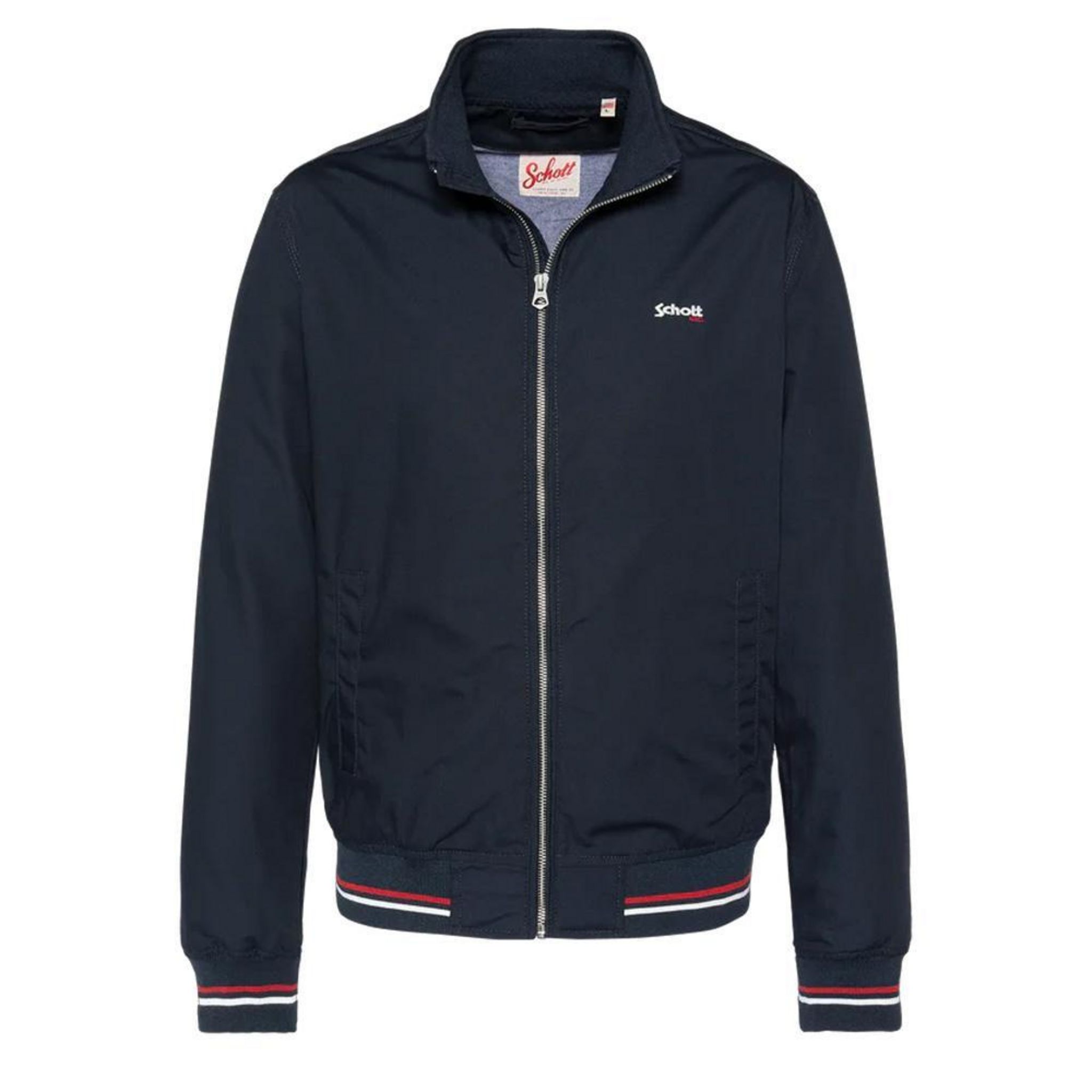 Optez pour cette veste SchottComposition : 65%polyester 35% CotonColoris : MarineManches longuesCol montantAttention l'article taille petit !