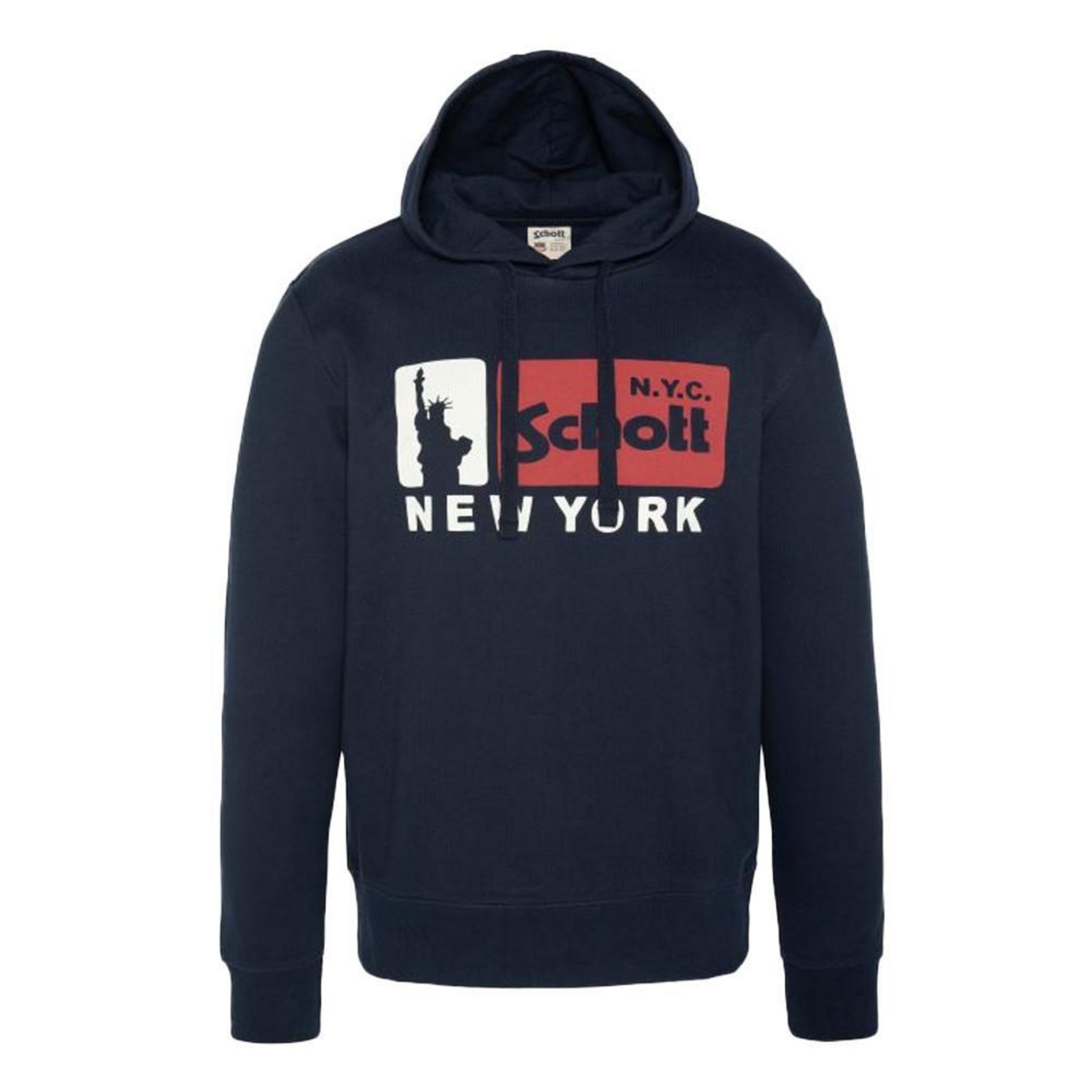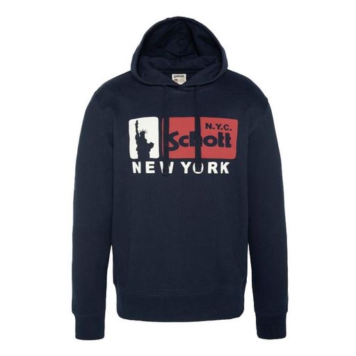 Optez pour le sweat homme de la marque Schott ! Coloris : Marine/ Rouge Manches longues Sweat à capuche avec cordon de serrage Imprimé sur la poitrine 80% Coton, 20% Polyester
