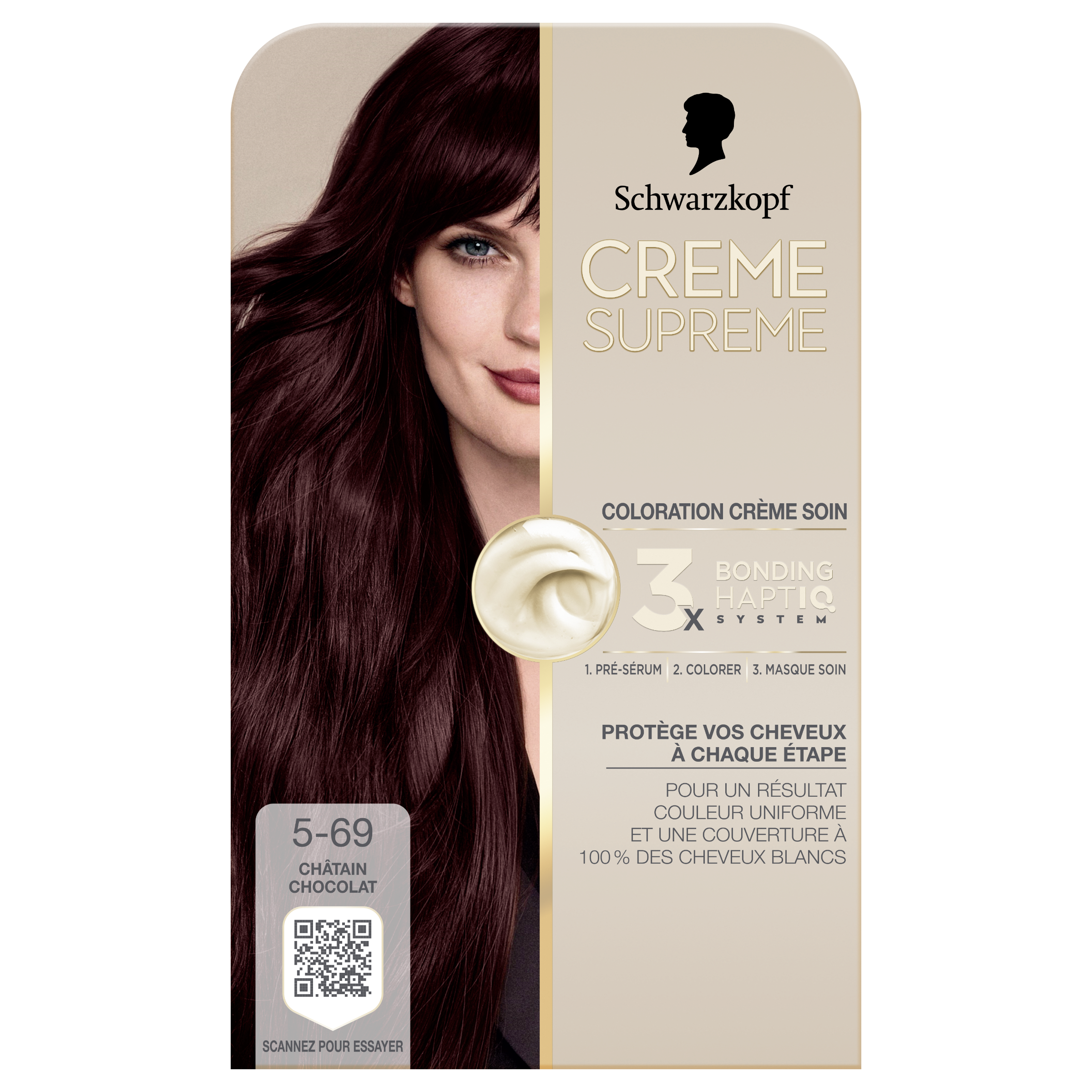 Coloration crème soin de Schwarzkopf. La coloration en 3 étapes prend soin de vos cheveux et couvre 100% des cheveux blancs. Pré-sérum soin intense prépare parfaitement les cheveux pour la coloration. Cette coloration protège vos cheveux tout en colorant uniformément. La formule du soin incluant le système HaptIQ prend soin de vos cheveux: en créant de nouvelles micro-liaisons capillaires et égalise les zones fragilisée. ISSUE DES LABORATOIRES SCHWARZKOPF Une couleur permanente qui ne s'estompe pas.