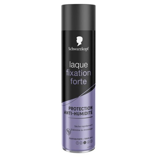 Laque fixation Ultra Forte. Tenue & Resistance. Sèche rapidement. S'élimine au brossage. Fixation ultra forte - Tenue 4heures - Fixation 5 - La formule dépose un voile protecteur sur la chevelure et lui procure un équilibre parfait entre fixation et souplesse. Pour une coiffure très résistante qui tient 48 heures, sans effet carton. S'élimine facilement au brossage. Pour une finition naturelle : vaporisez à 30cm. Pour coiffer vos mèches une à une : vaporisez dès la racine en les structurant jusqu'aux pointes. Pour un résultat optimal, vous pouvez utiliser le Spray Protection 230°C à la Kératine de Schwarzkopf.