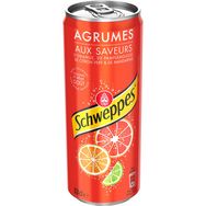 Boisson gazeuse rafraîchissante aux arômes naturels d'agrumes avec autres arômes naturels, avec sucre et édulcorants. Aux saveurs de 4 agrumes / Aux saveurs d'agrumes.